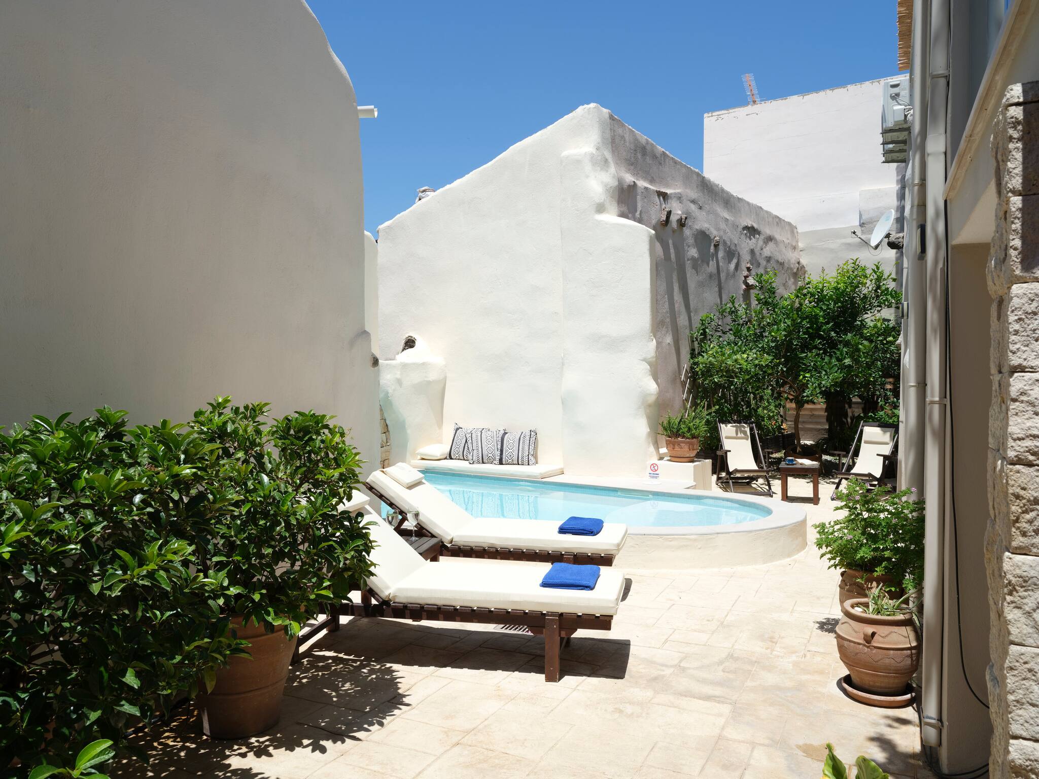 Step outside to your private courtyard with a plunge pool, sunbeds, and a charming garden filled with local flowers, herbs, and vegetables. Relax under the Cretan sun or enjoy peaceful evenings in a truly tranquil setting.