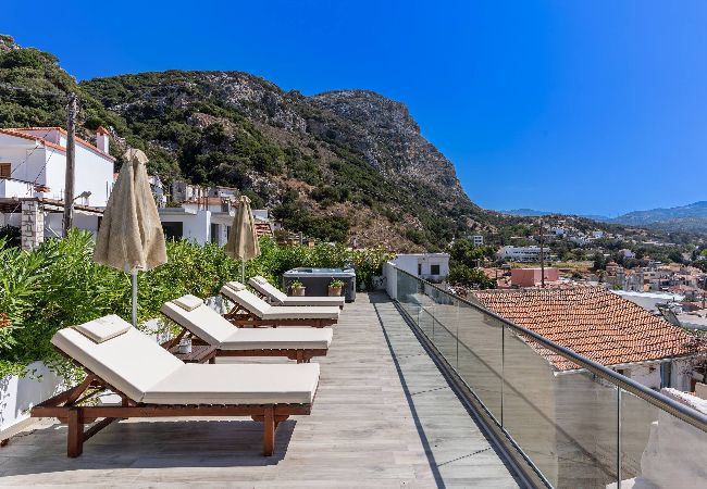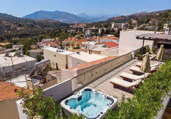 The highlight of Casa Sofia #2 is the rooftop terrace, featuring a Jacuzzi, barbecue area, and panoramic views over the village and surrounding mountains — perfect for romantic evenings or friendly gatherings.