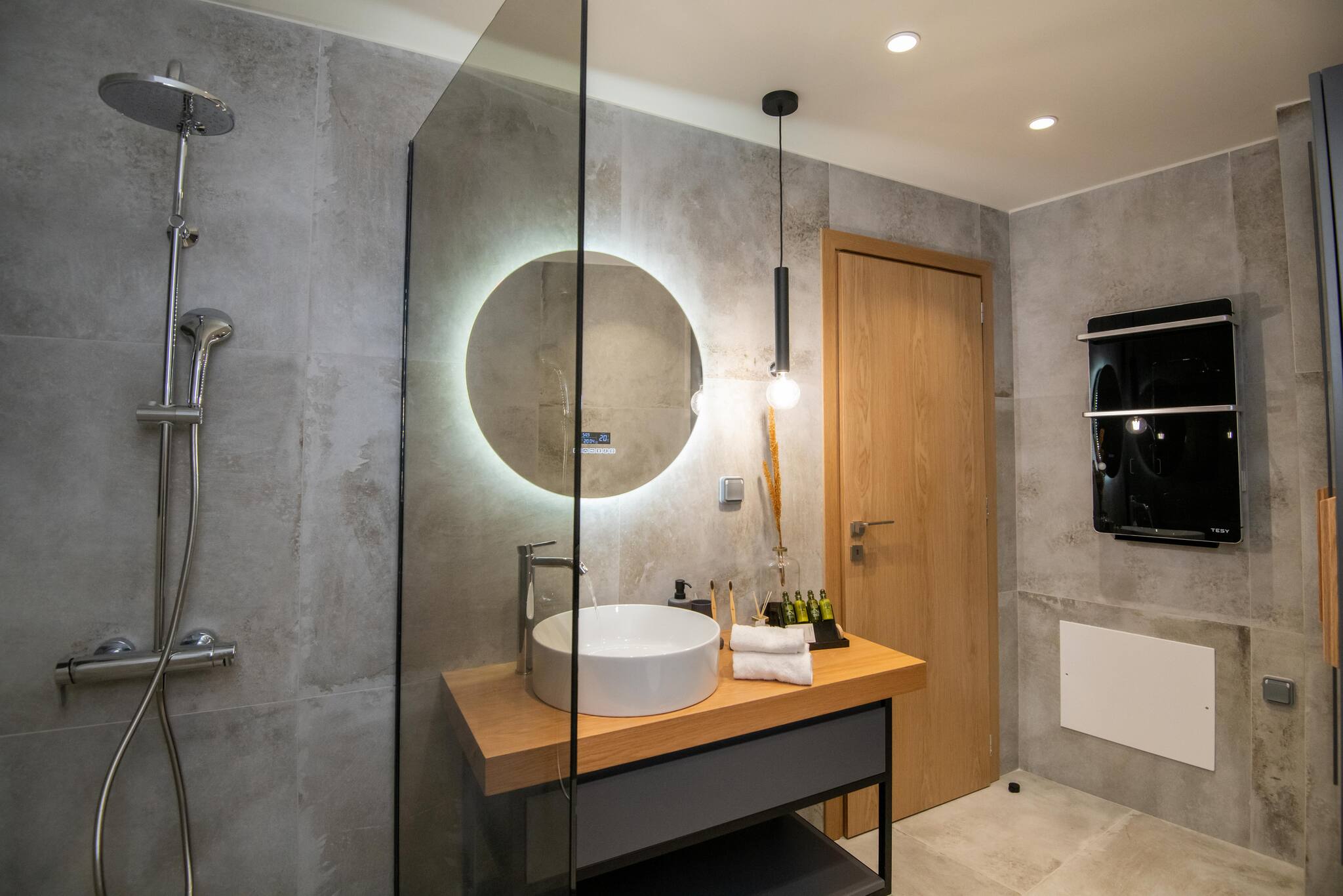 Guests have exclusive access to all upper-floor areas, including the terrace, BBQ, and Jacuzzi.