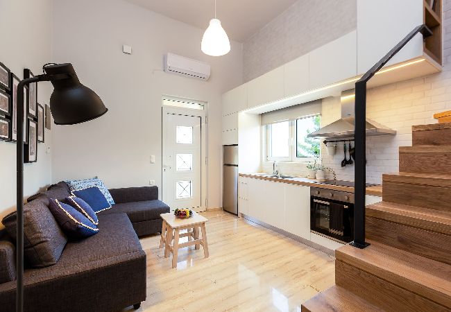 Discover a modern and cozy retreat in the residential area of Violi Charaki, just 3 km from Rethymno city centre and 4 km from the Municipal Beach. Located on the ground floor of a complex of five houses inhabited by four families, this home accommodates up to 5 guests.