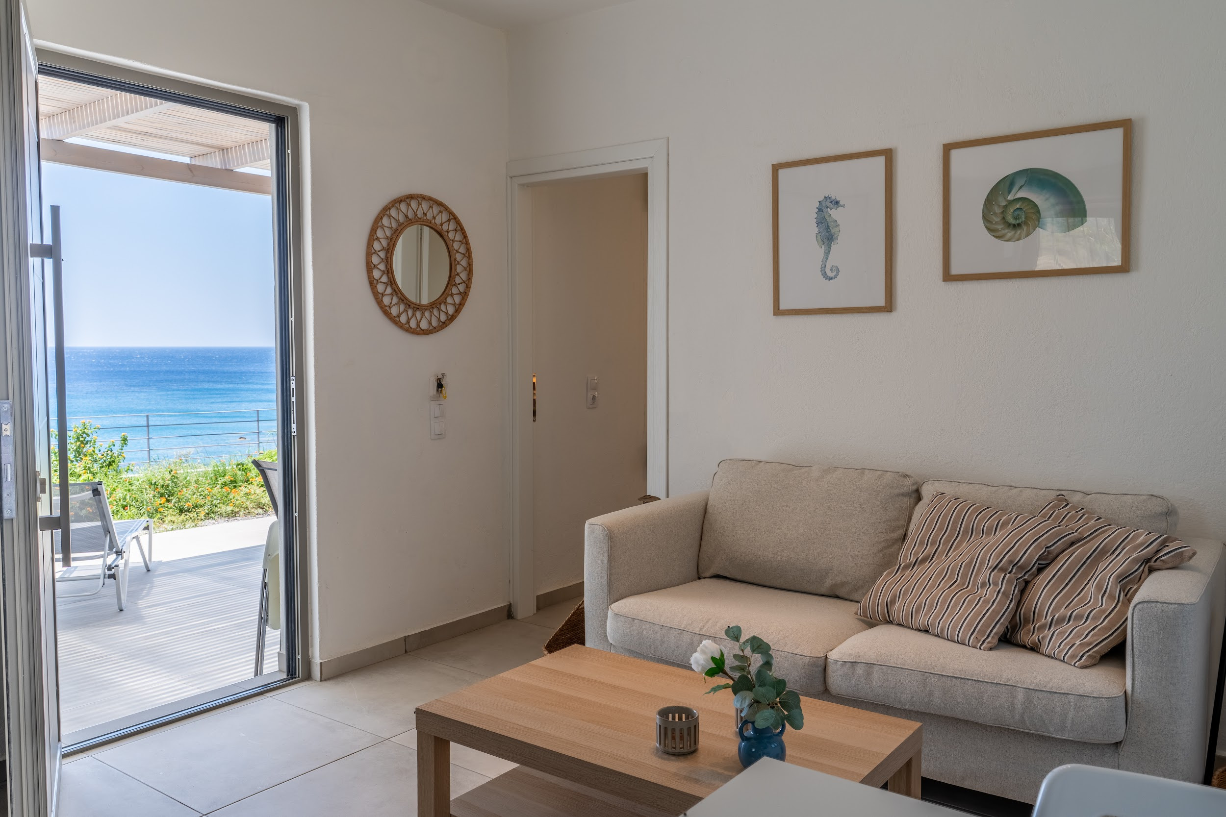 • Outdoor Space: Step outside to enjoy breathtaking sea views. The outdoor area is perfect for dining al fresco at the table or lounging on sunbeds, whether you're soaking up the sun or gazing at the stars.