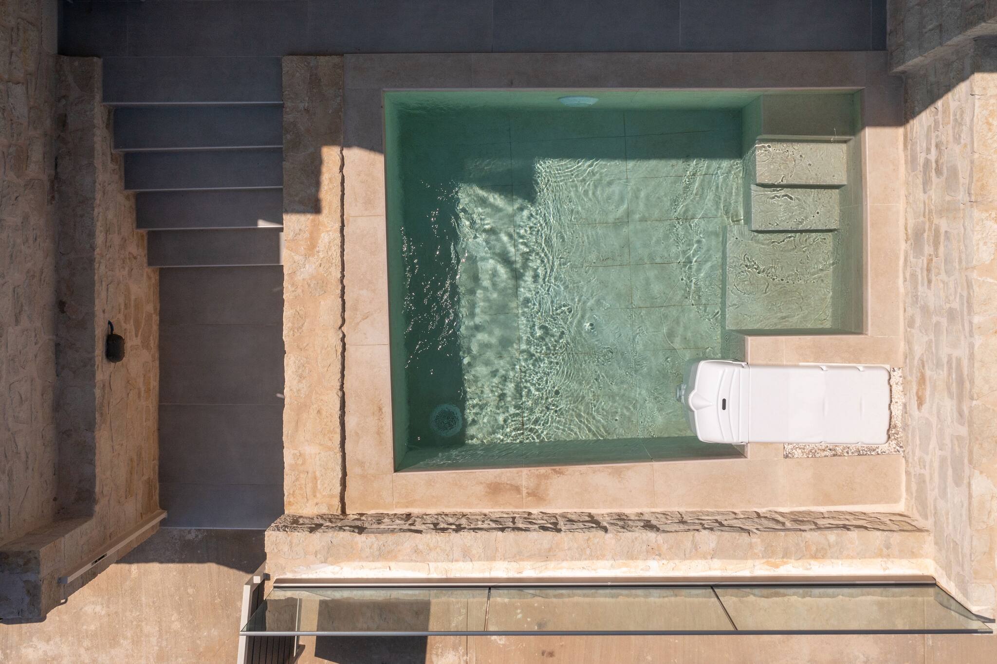 The suite accommodates up to 4 guests across two bedrooms. Upstairs, there is a double bedroom with its own bathroom, while downstairs you will find a second double bedroom and a full bathroom. The ground floor also includes an open-plan kitchen and living area that opens directly onto the pool terrace. The kitchen is fully equipped with refrigerator, freezer, oven, dishwasher, hob, kettle, coffee machine, toaster, dishes, cutlery, kitchen utensils, and a washing machine. Bed linens, face towels, bath towels, and pool towels are provided. Guests have exclusive access to the suite and its pool area.