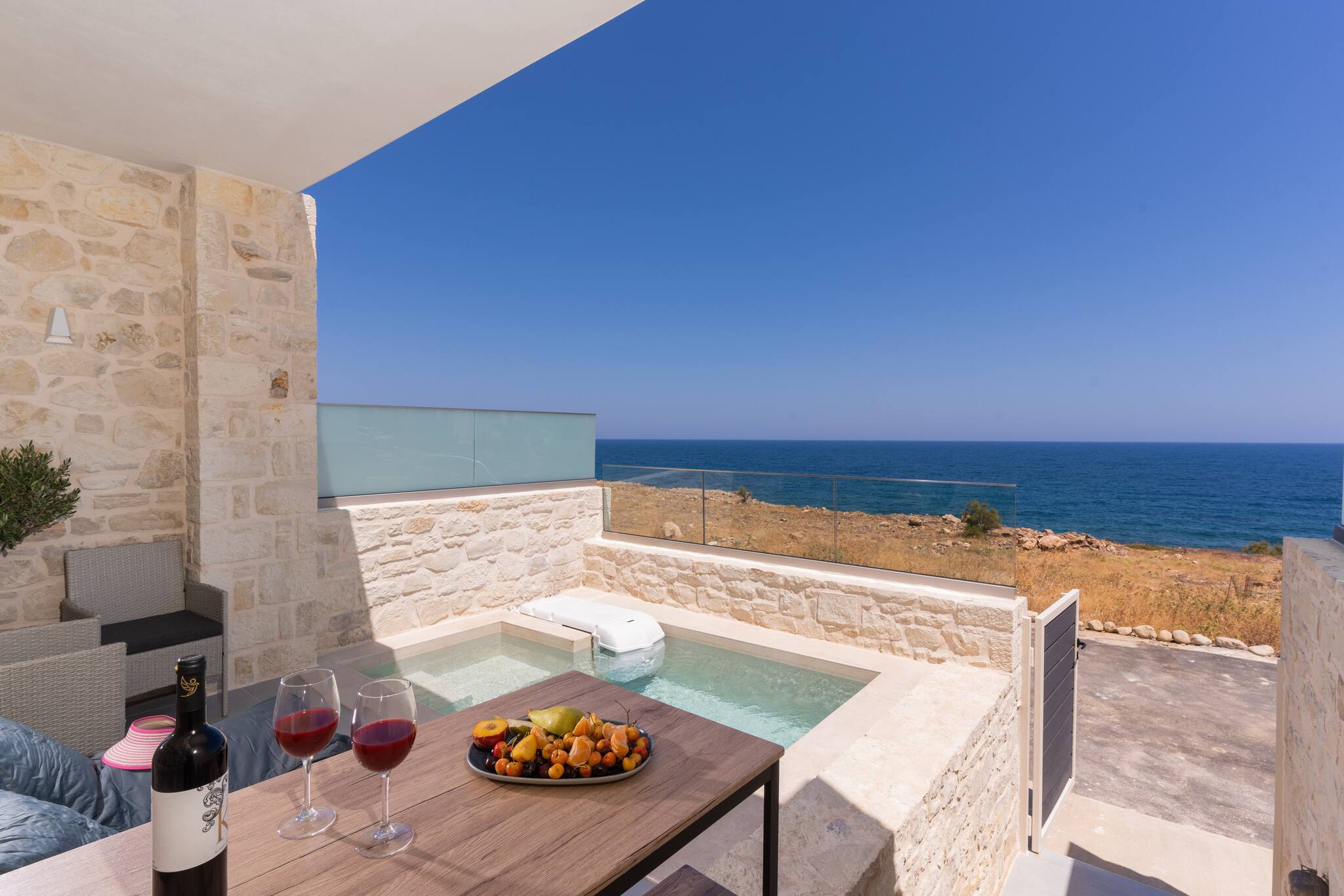 Lucia Suite is part of a seaside complex, located just a few steps from a rocky seafront. The suite offers comfortable accommodation and a private plunge pool with outdoor seating, providing a nice setting for a stay in Panormo.