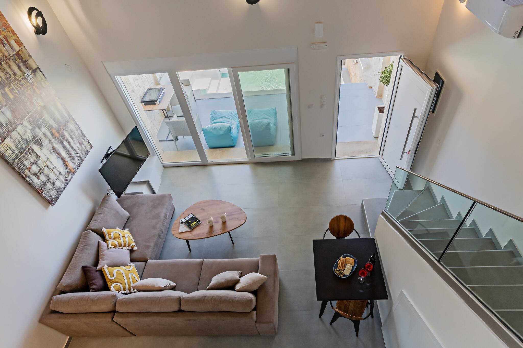 Aura Suite is part of OceanEye Suites, located in a residential complex just a few steps from a rocky seafront. The suite offers comfortable accommodation and a private plunge pool with outdoor seating, providing a nice setting for a stay in Panormo.