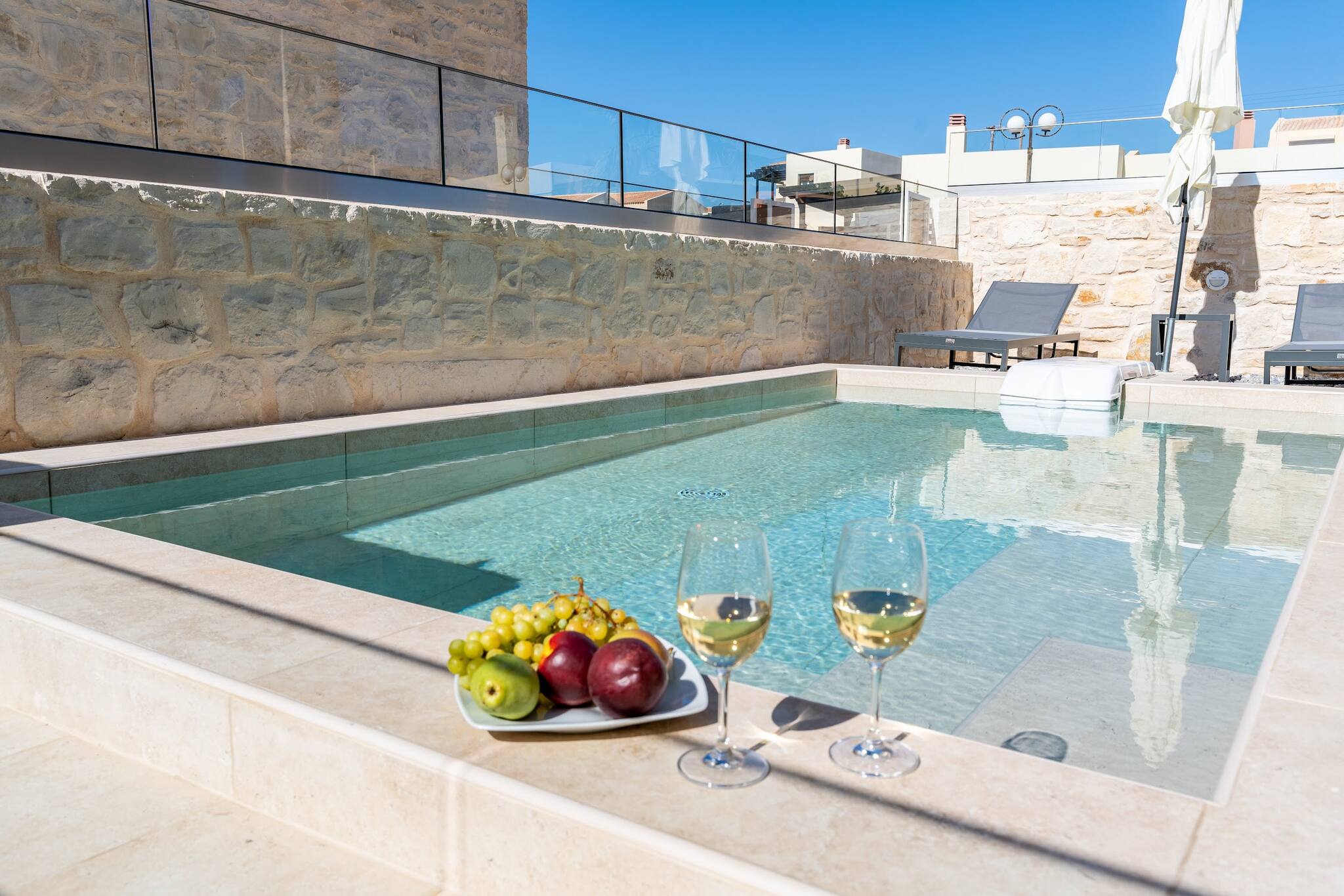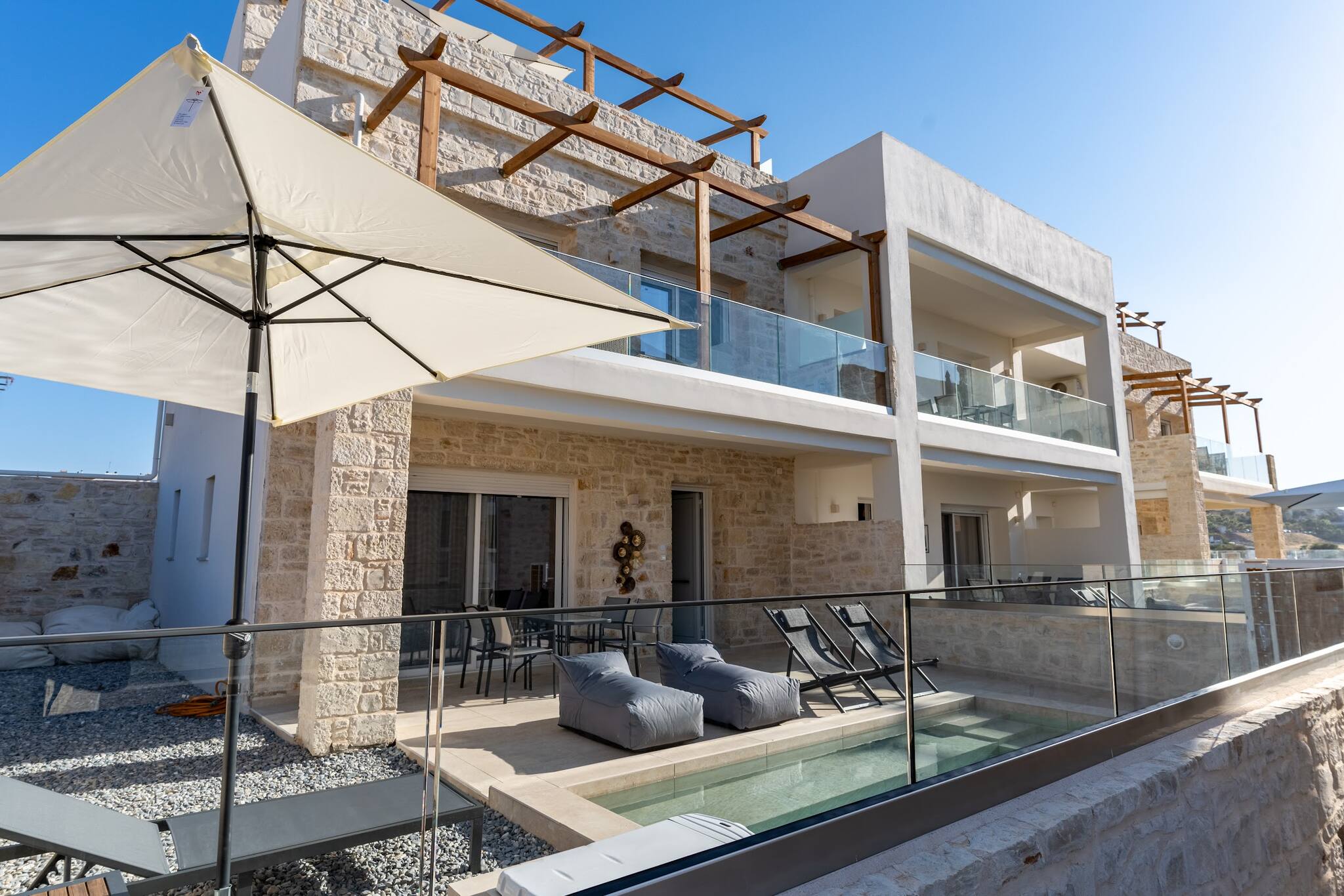 Symphony Suite is part of a residential complex in Panormo, located just a few steps from a rocky seafront. The suite offers comfortable accommodation for up to 6 guests, combining modern comfort with lovely sea views, a private swimming pool, and an upper balcony with a Jacuzzi — perfect for moments of relaxation.