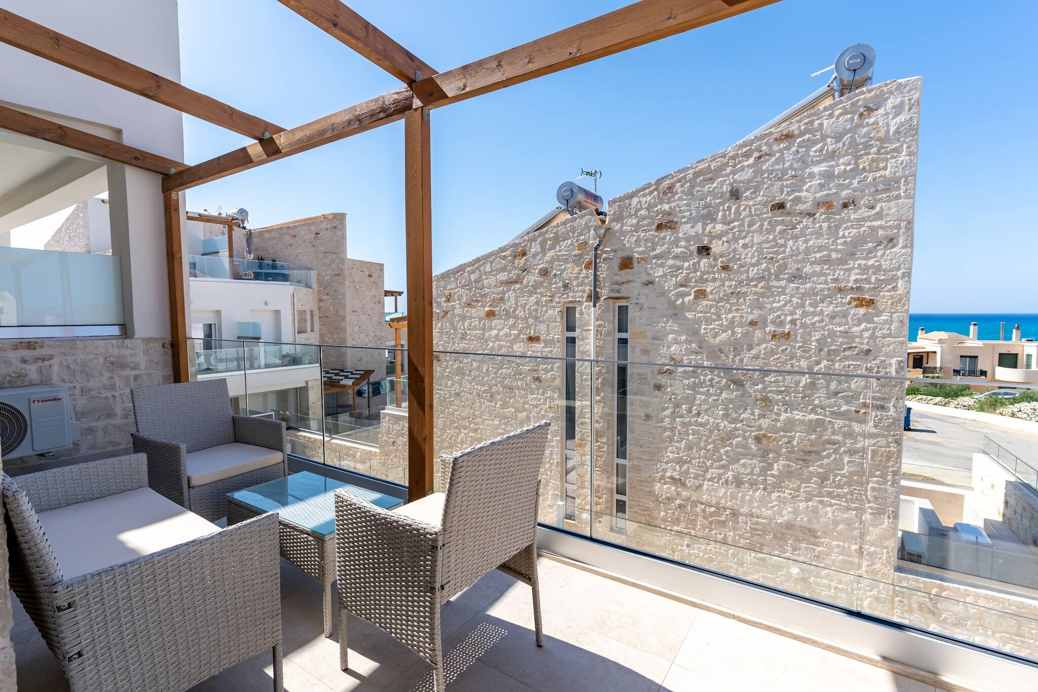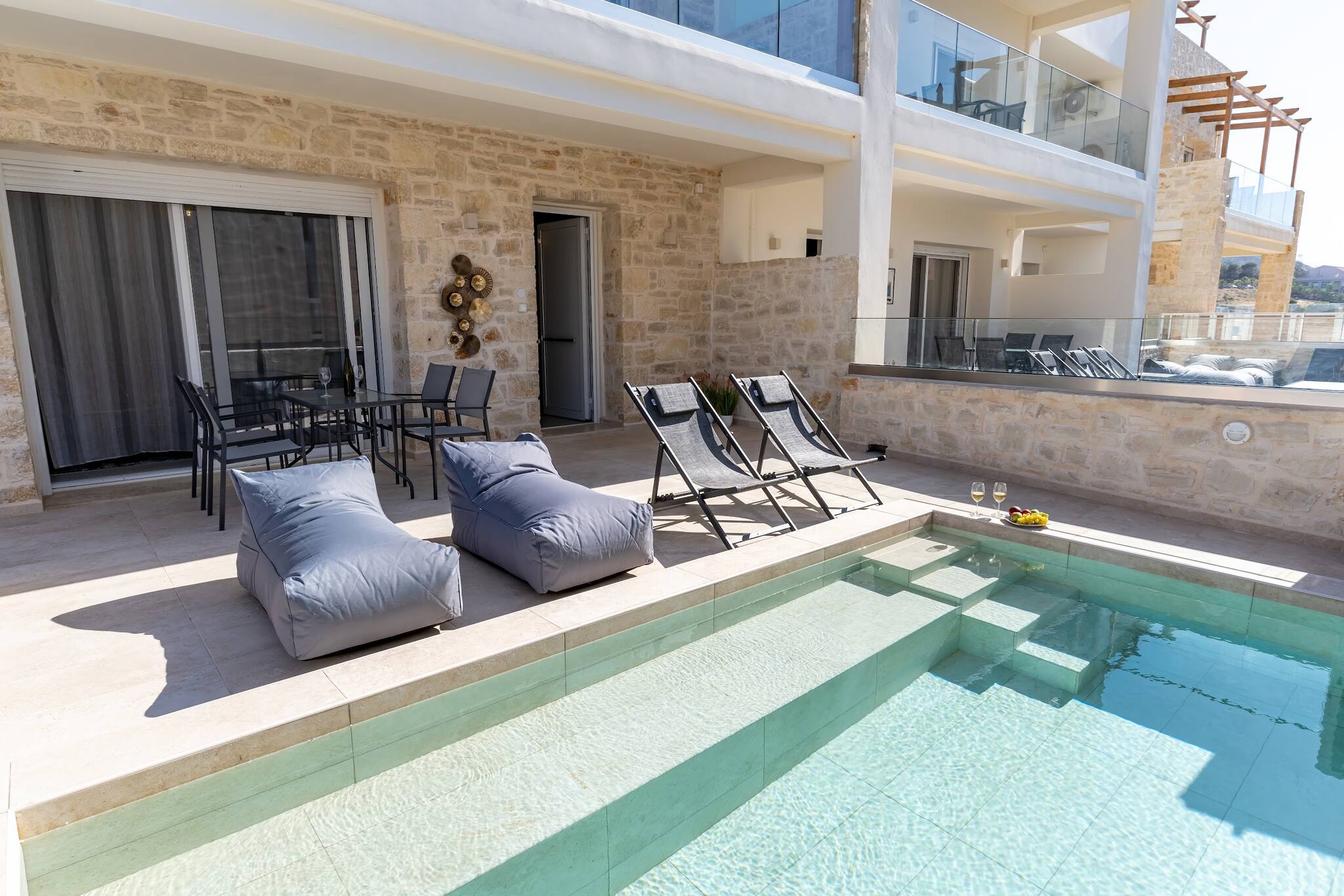 Lyra Suite is part of a residential complex in Panormo that offers comfortable accommodation with beautiful sea views, a private swimming pool, and a furnished terrace, creating a lovely setting for a relaxing stay on the Cretan coast.