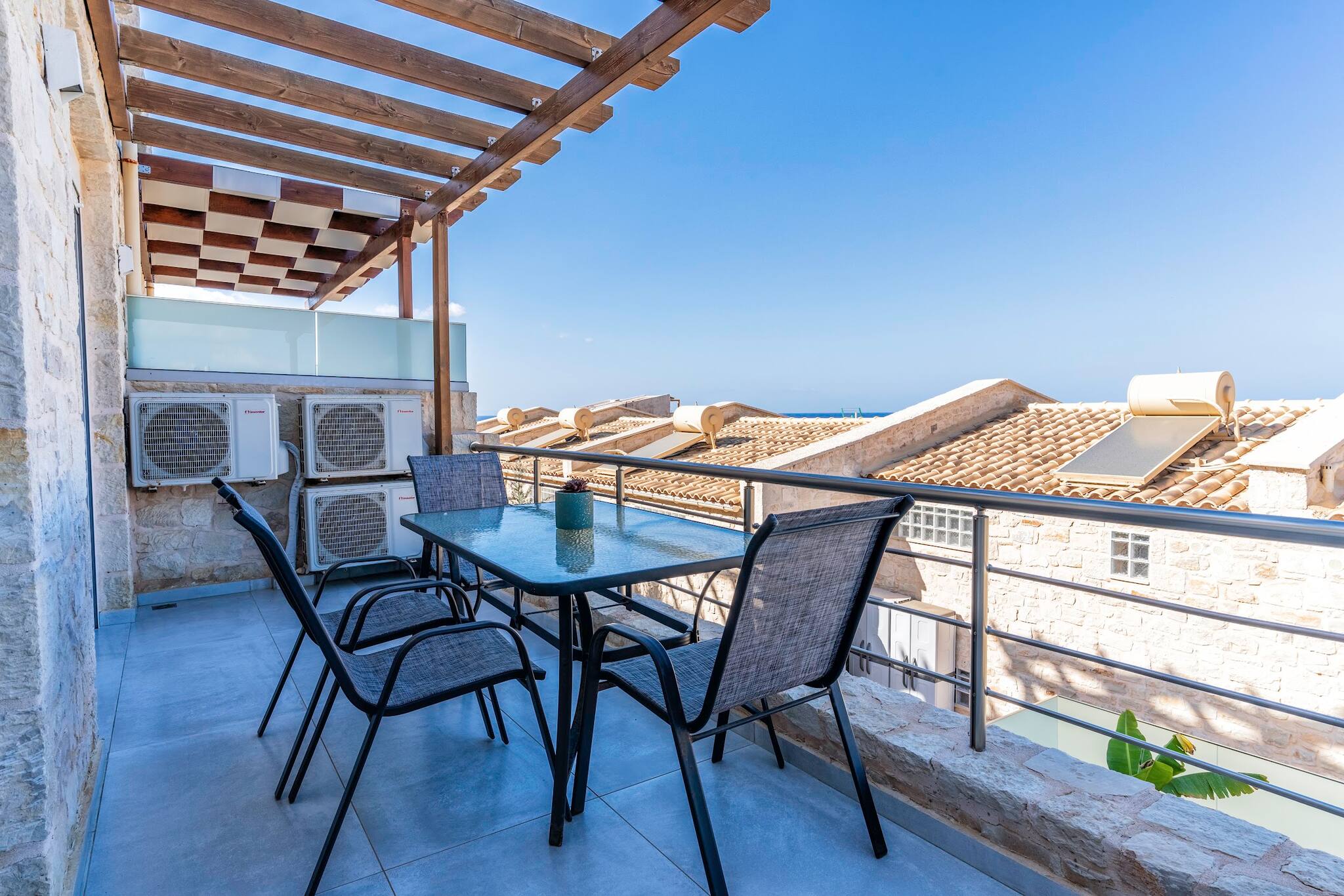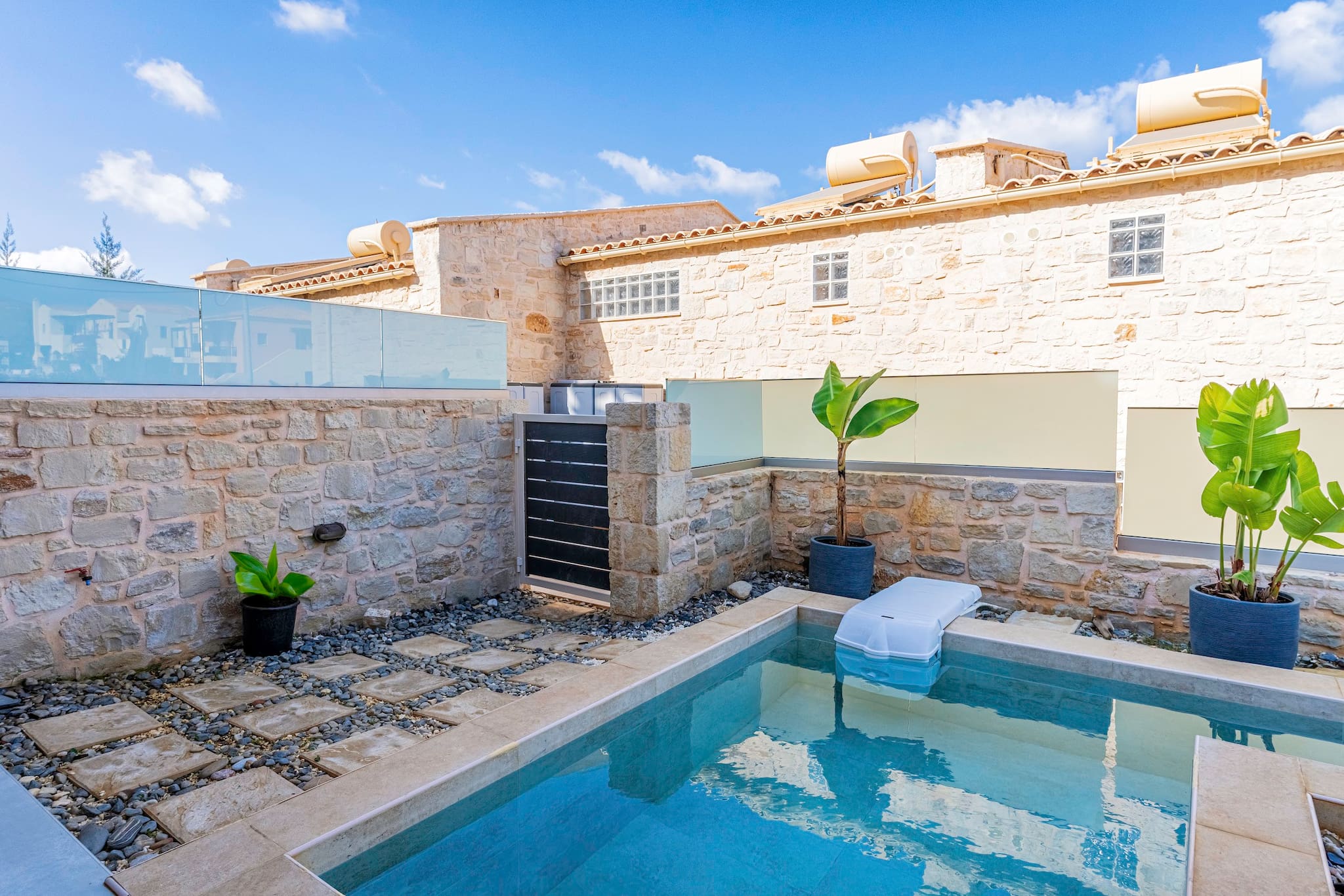 Symphony Suite is part of a residential complex in Panormo, located just a few steps from a rocky seafront. The suite offers comfortable accommodation for up to 6 guests, combining modern comfort with lovely sea views, a private swimming pool, and an upper balcony with a Jacuzzi — perfect for moments of relaxation.