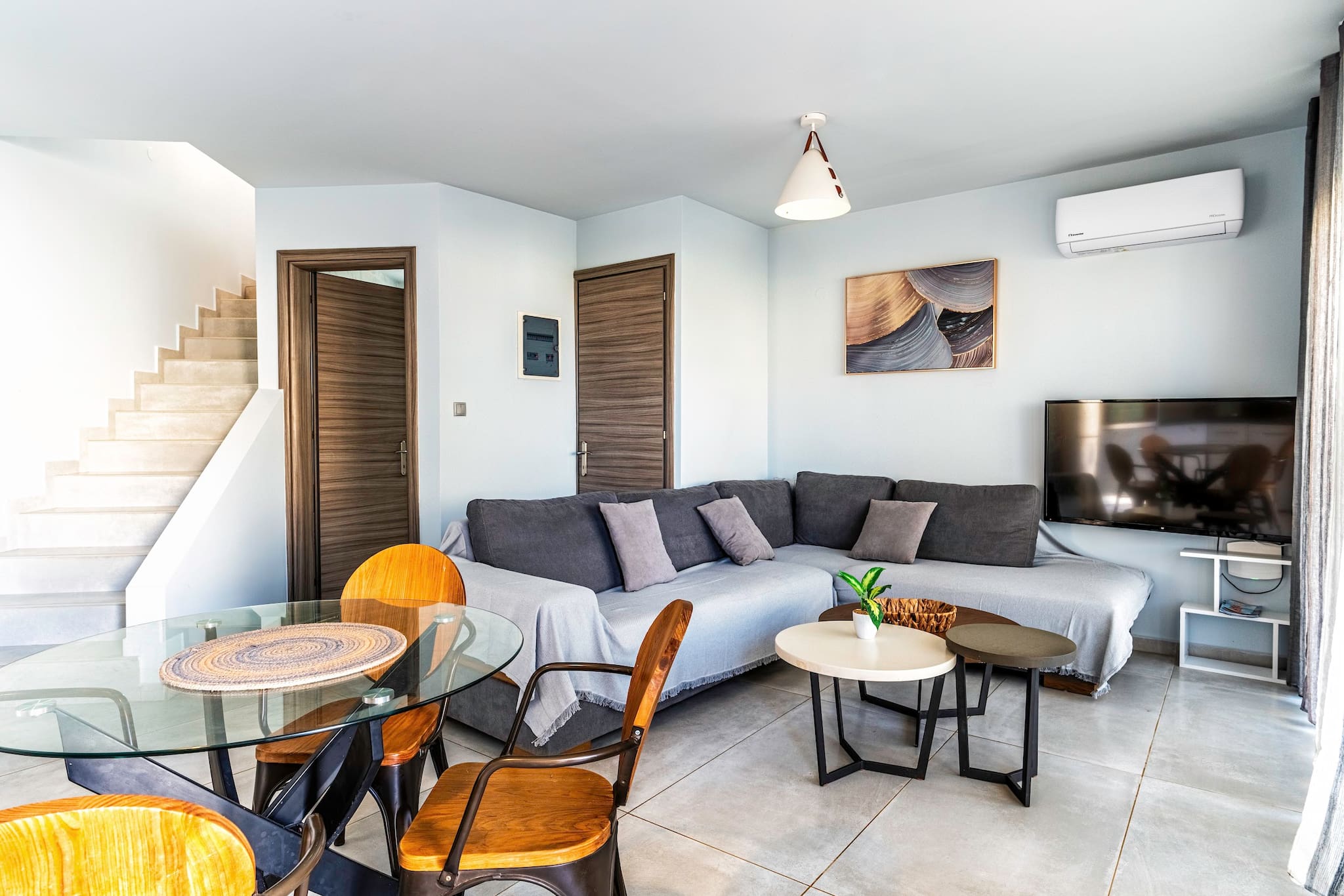 The charming village of Panormo is the perfect place to unwind, with authentic taverns serving fresh local dishes, cafés, and quaint shops selling handmade goods. The property is within walking distance of Panormo’s village center, its sandy beaches, supermarkets, and grocery stores. Just a short 5–7 minute drive takes you to Geropotamos Beach, known for its clear waters, or Spilies Beach, a small, scenic cove offering a more secluded experience.