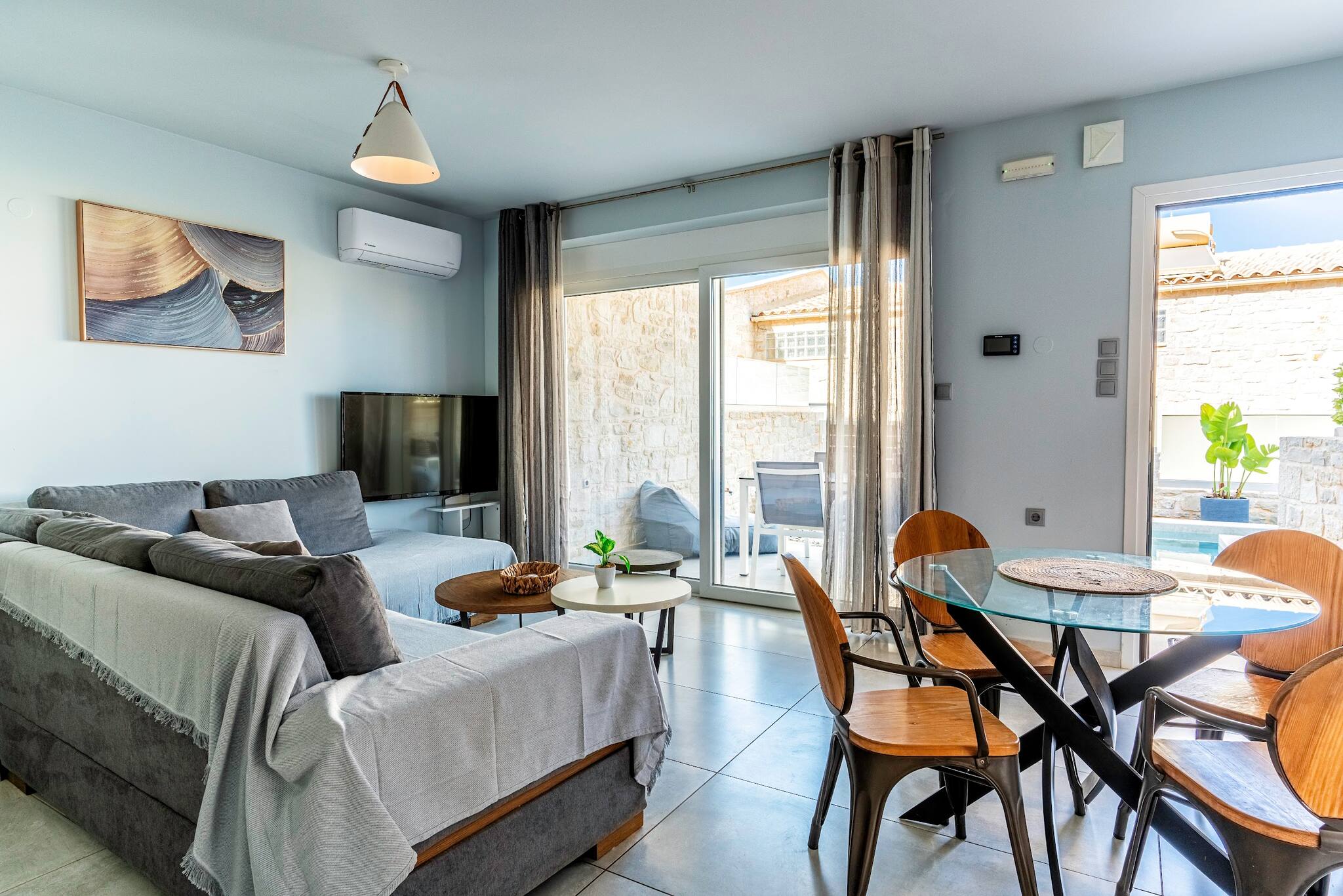 • Living Room: Bright and welcoming, opening directly to the terrace and pool area.