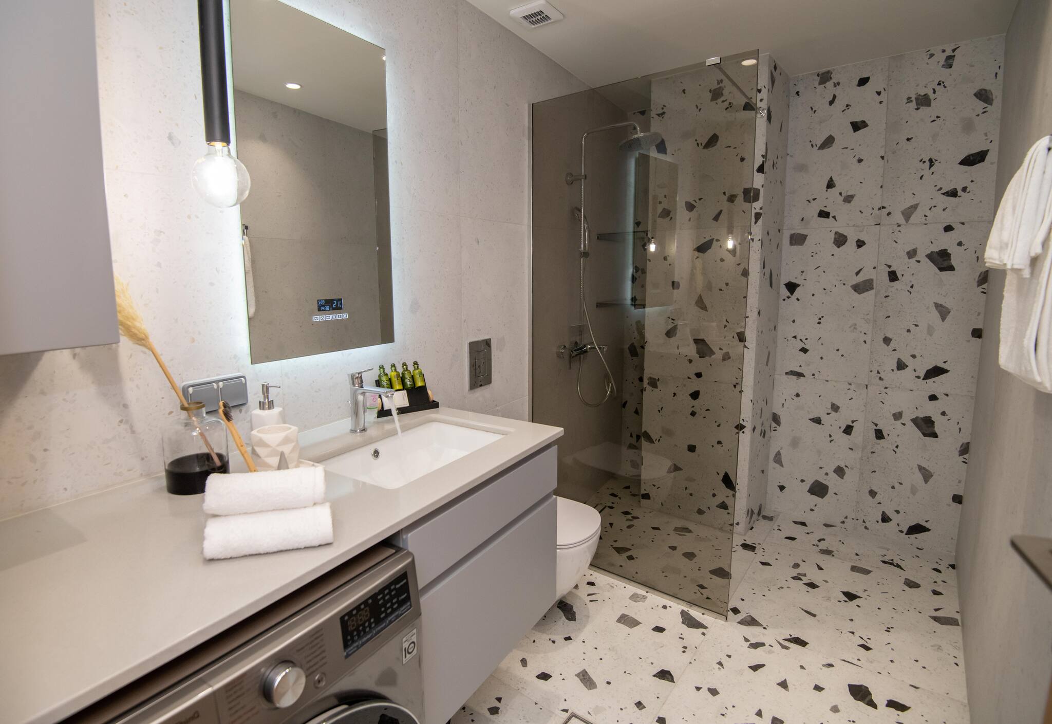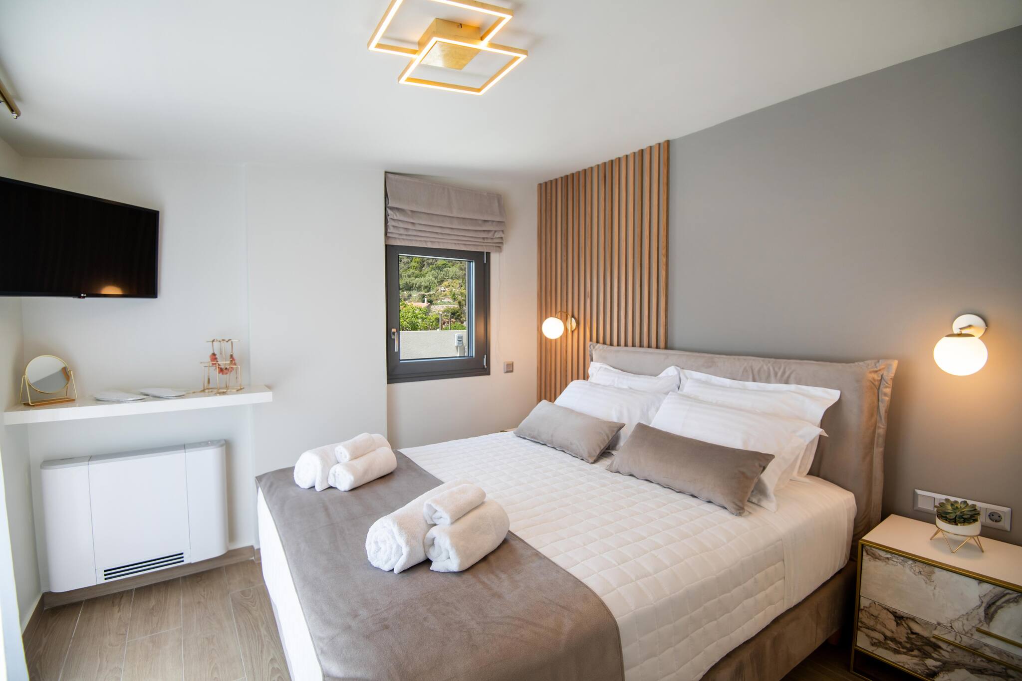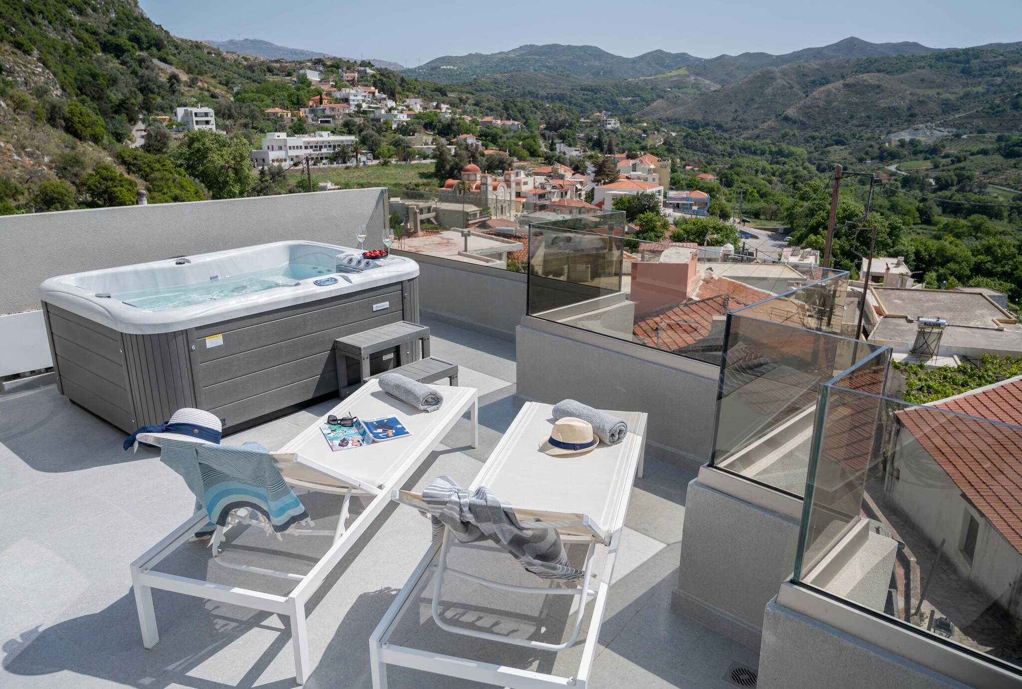 At the top, the rooftop terrace awaits — complete with a Jacuzzi and beautiful mountain and village views. It’s the perfect spot to relax, sunbathe, or enjoy evening drinks under the stars.