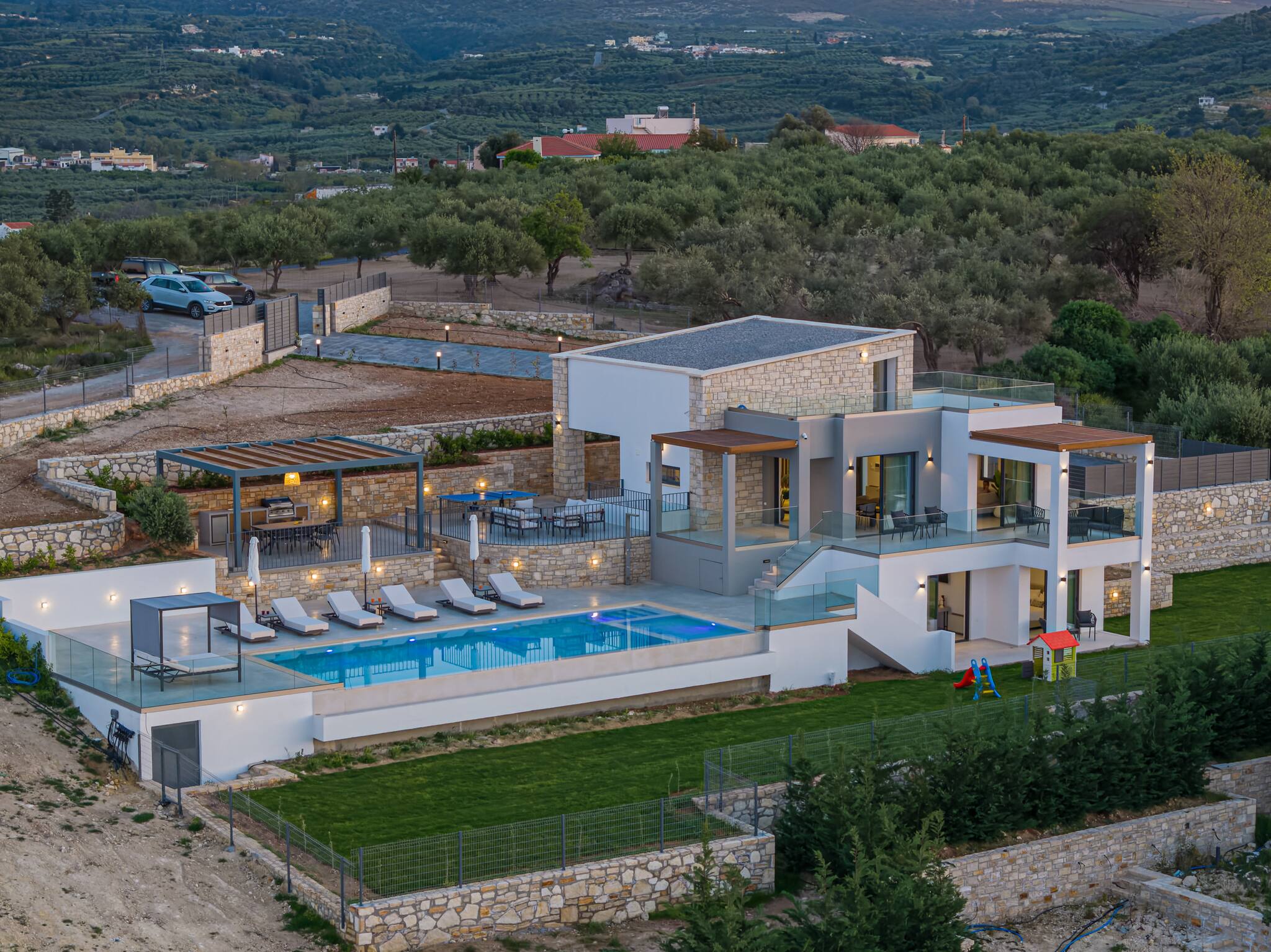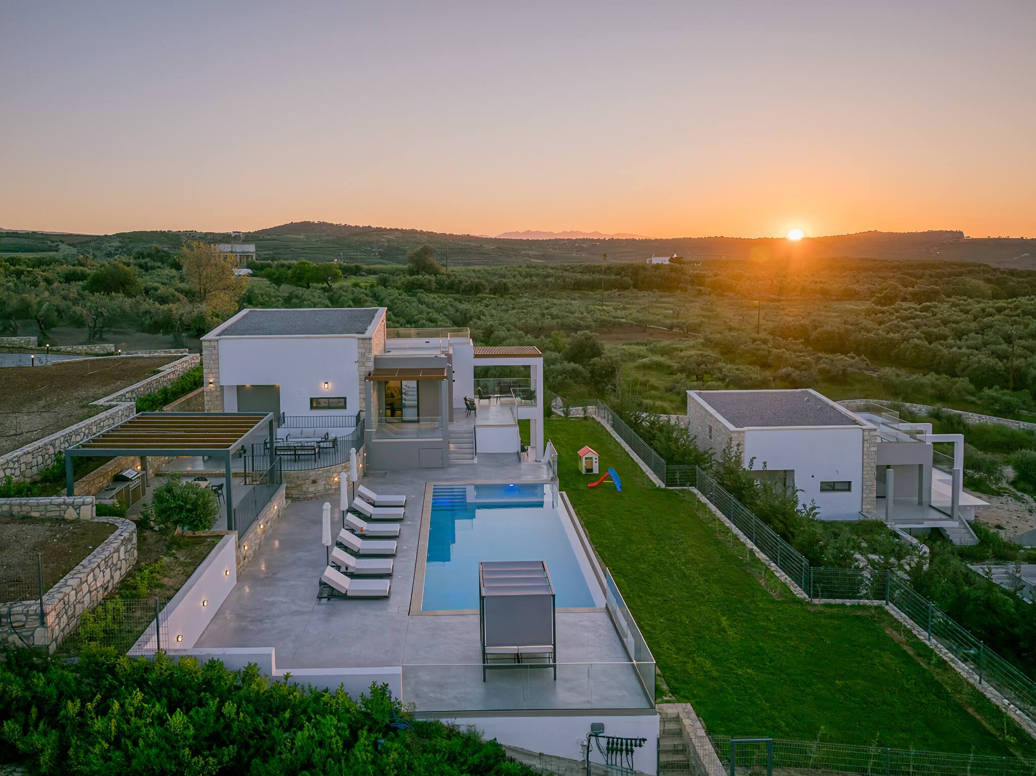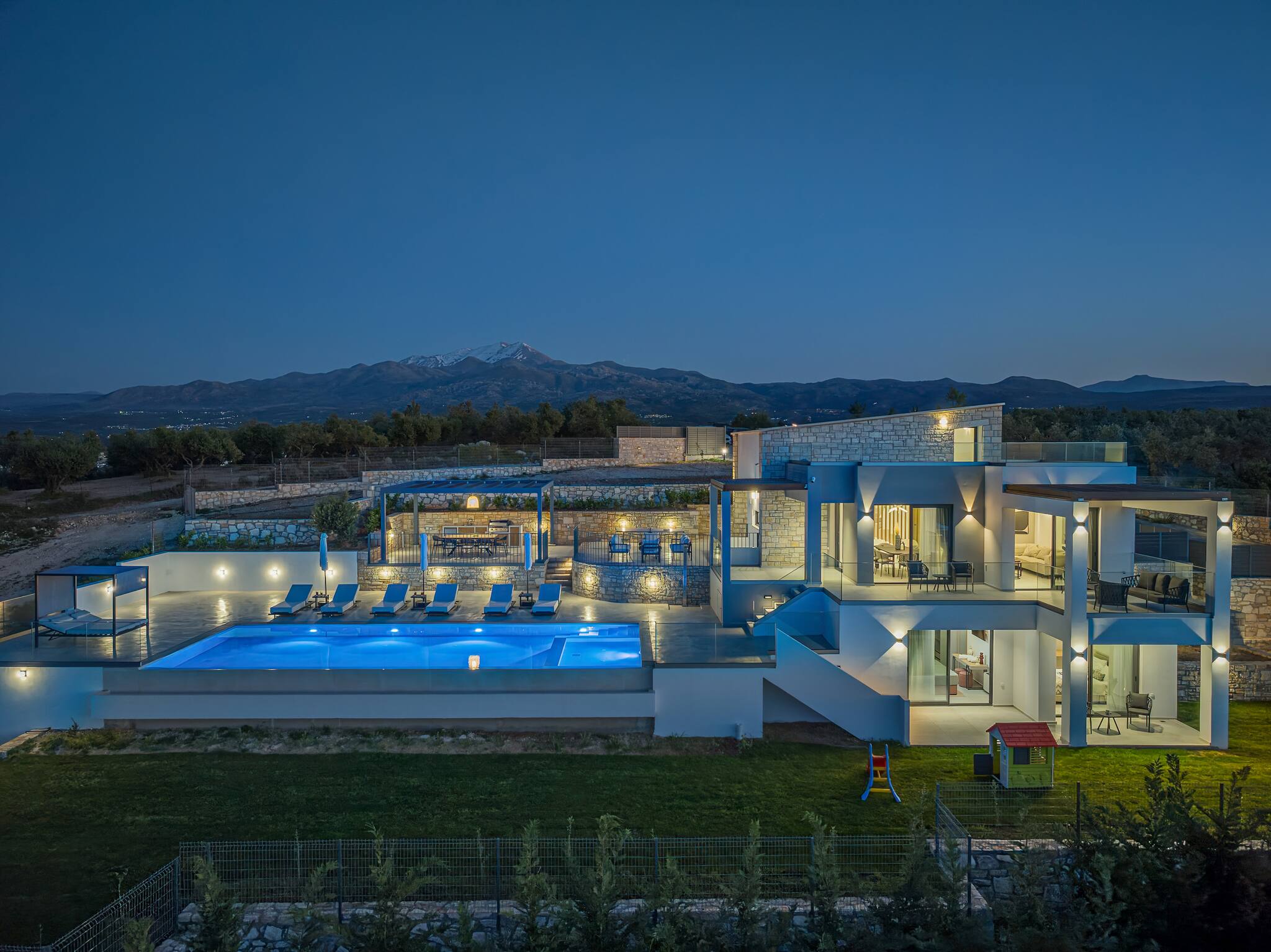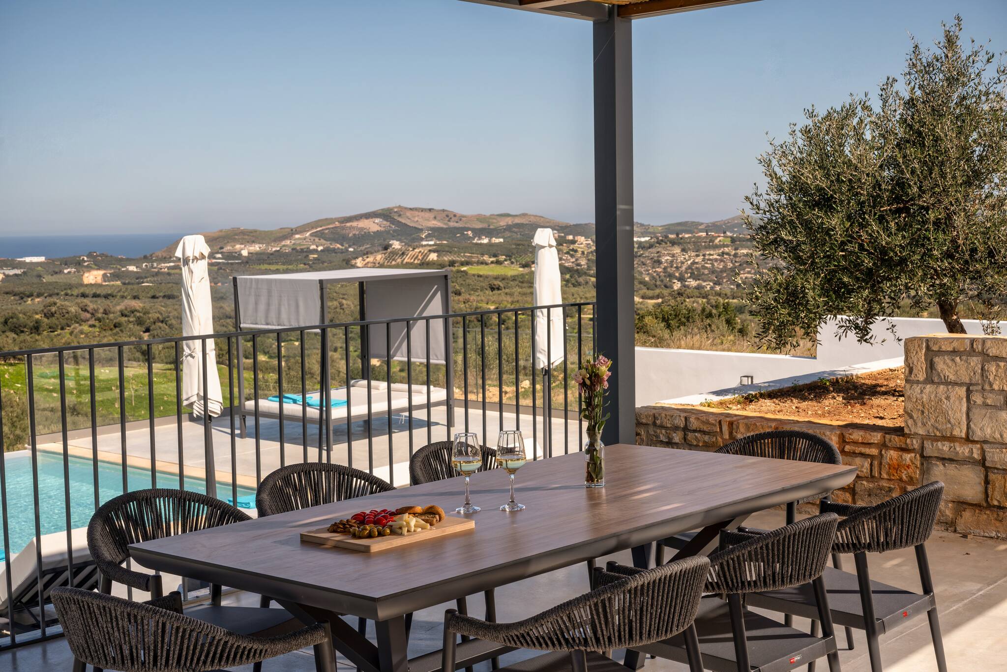 Skyline Villas is a luxurious complex featuring two stunning properties – Skyline Villa I and Skyline Villa II – located in the peaceful village of Aggeliana. Skyline Villa II offers an exceptional retreat for families or groups of friends seeking a serene and stylish escape on the island of Crete.