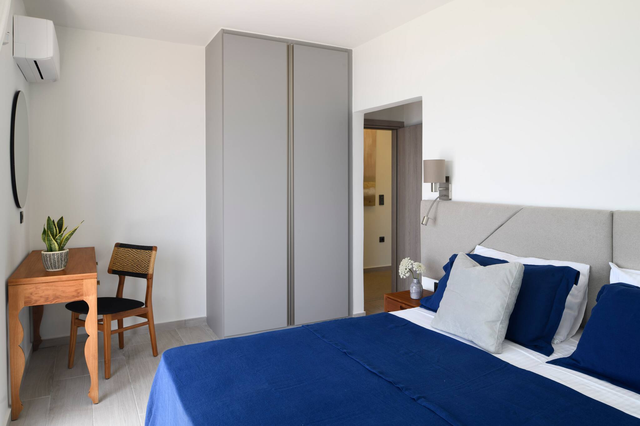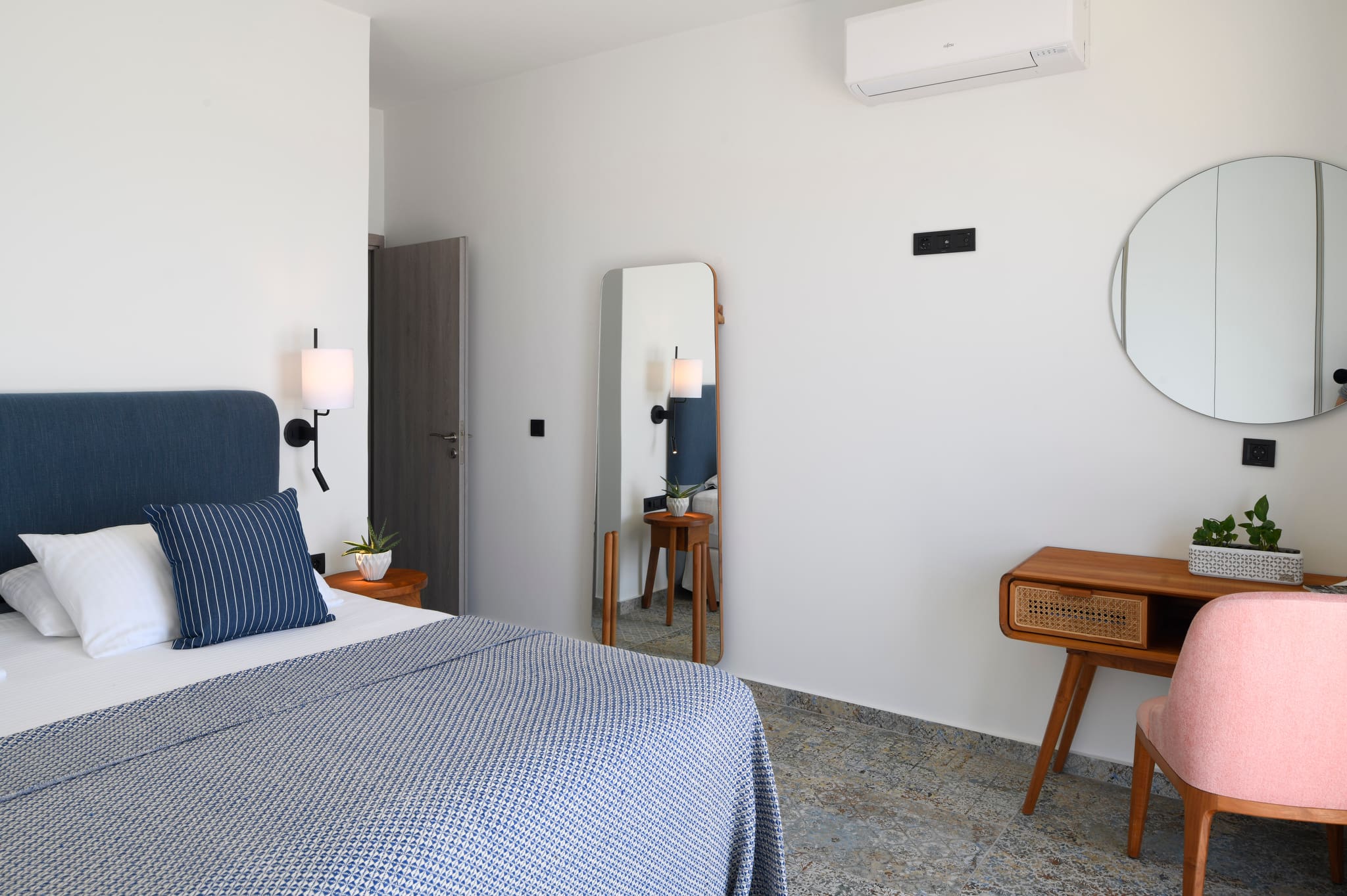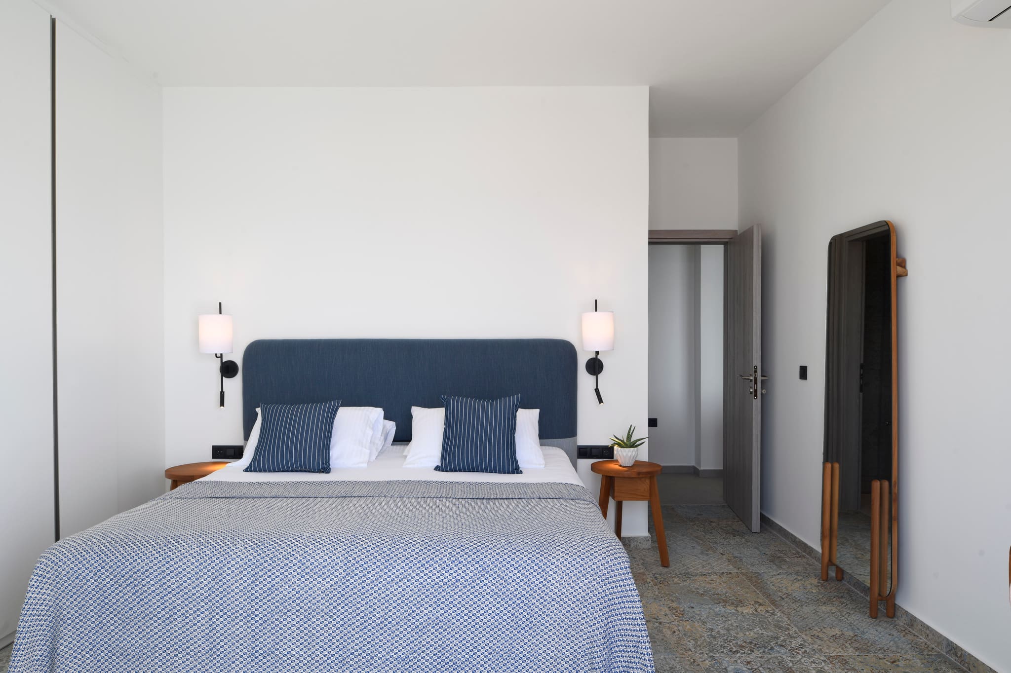 Inside, Rozites Villa combines timeless charm with modern convenience. On the first floor, you’ll find a fully equipped kitchen with modern appliances and a welcoming dining area, along with a cozy living room offering uninterrupted sea views. The master bedroom on this floor features an en-suite bathroom, ensuring privacy and comfort.