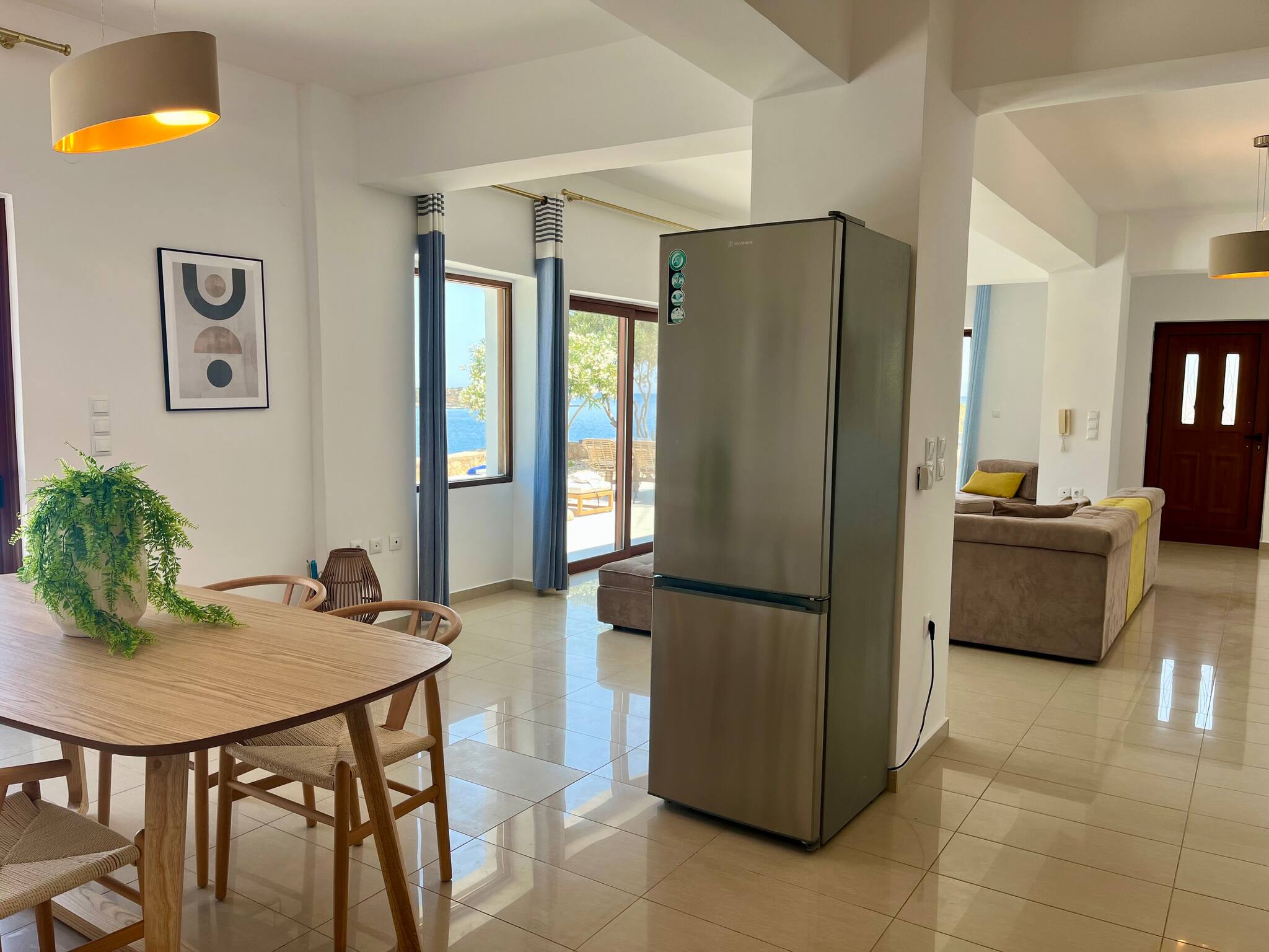 The villa’s interior has been thoughtfully designed to create a bright and airy ambiance, with large windows that invite in natural light and the refreshing sea breeze. Spanning 80 sqm, SeaWave Villa II can comfortably accommodate up to 5 guests (the 5th guest can be comfortably accommodated on a sofa in the living room).