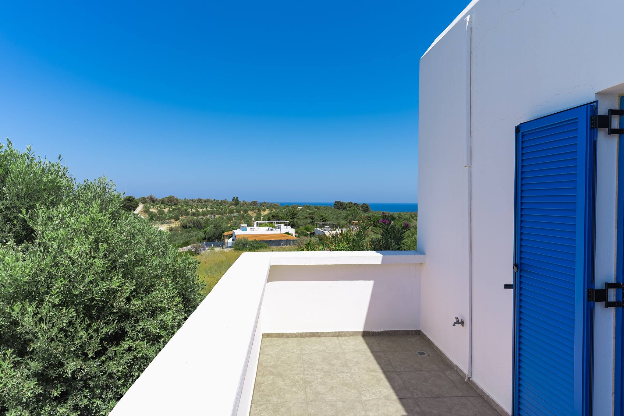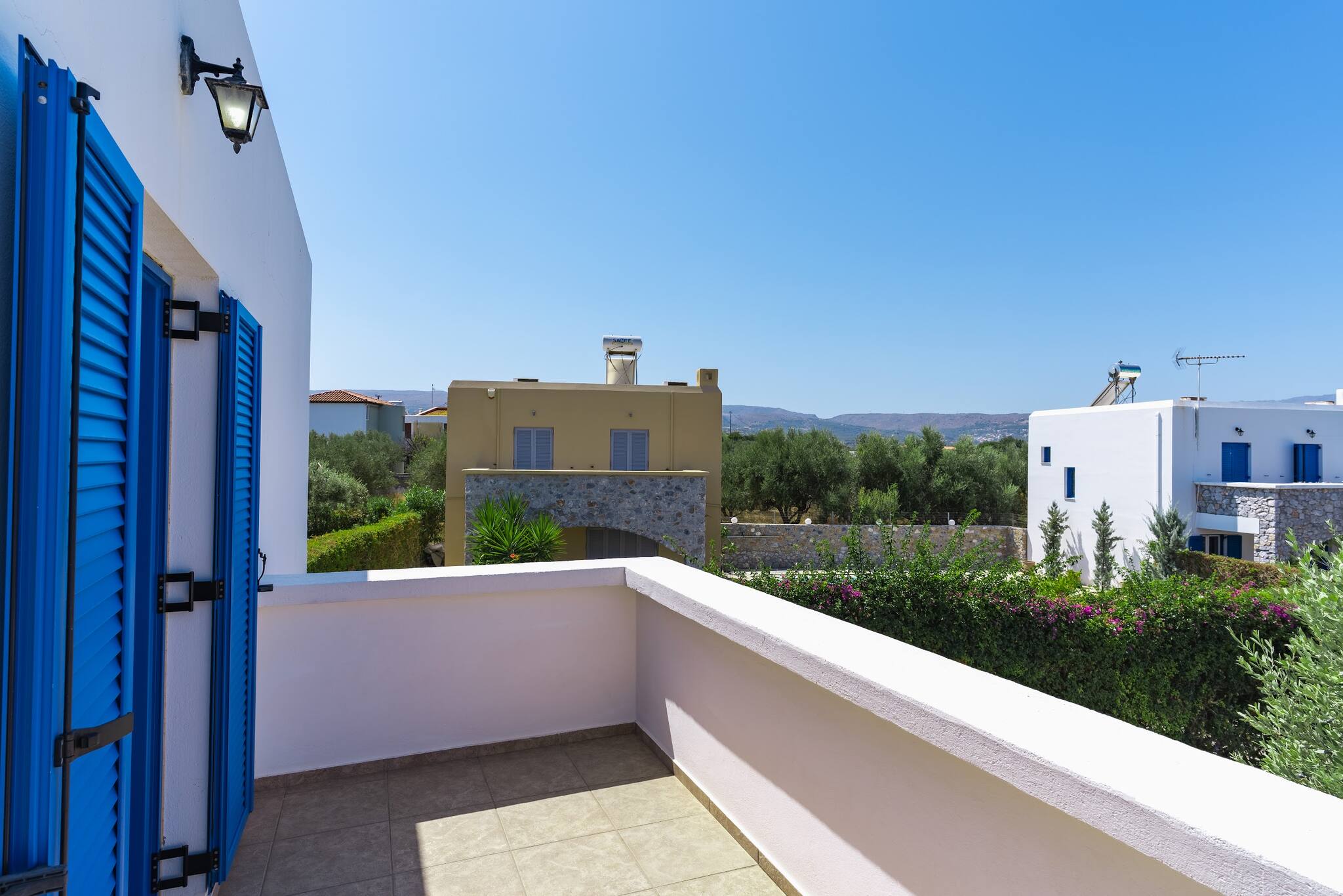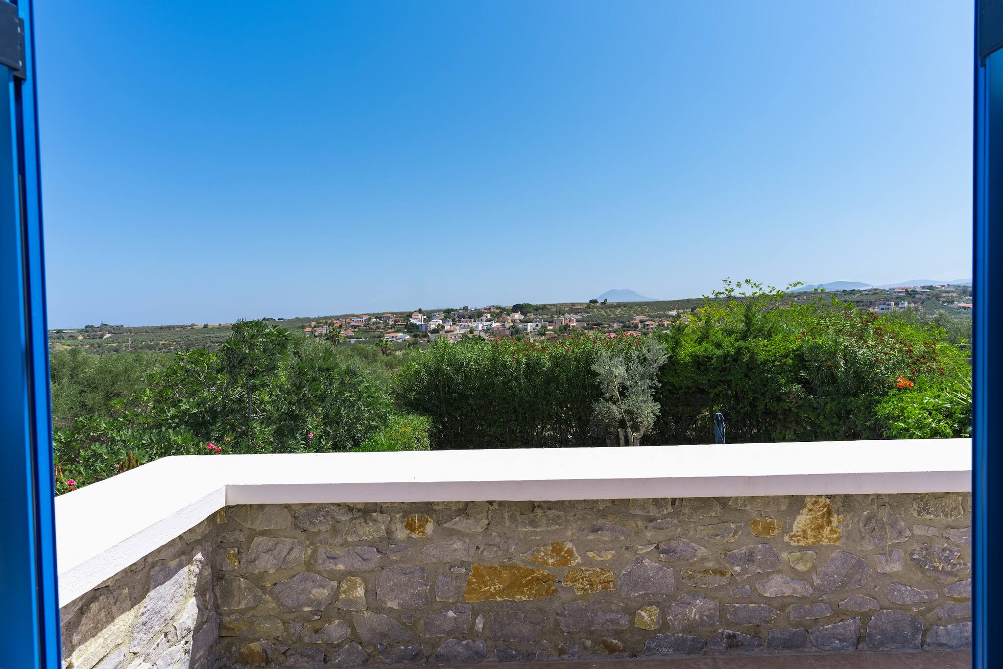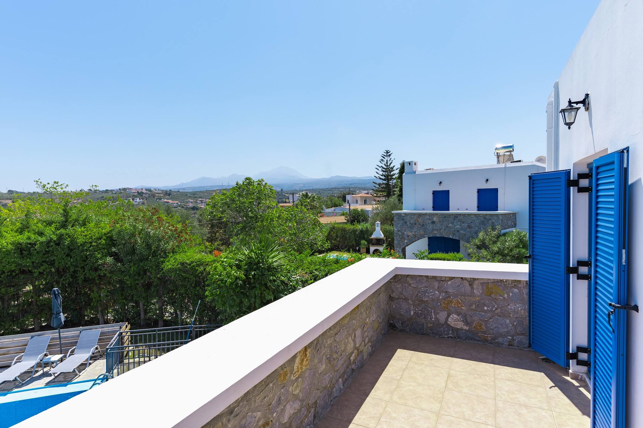 • Charming Greek Design: Embrace the traditional Greek aesthetic with Villa Irini’s whitewashed walls, striking blue shutters, and rustic stone elements, all set against the beautiful backdrop of the Cretan landscape.