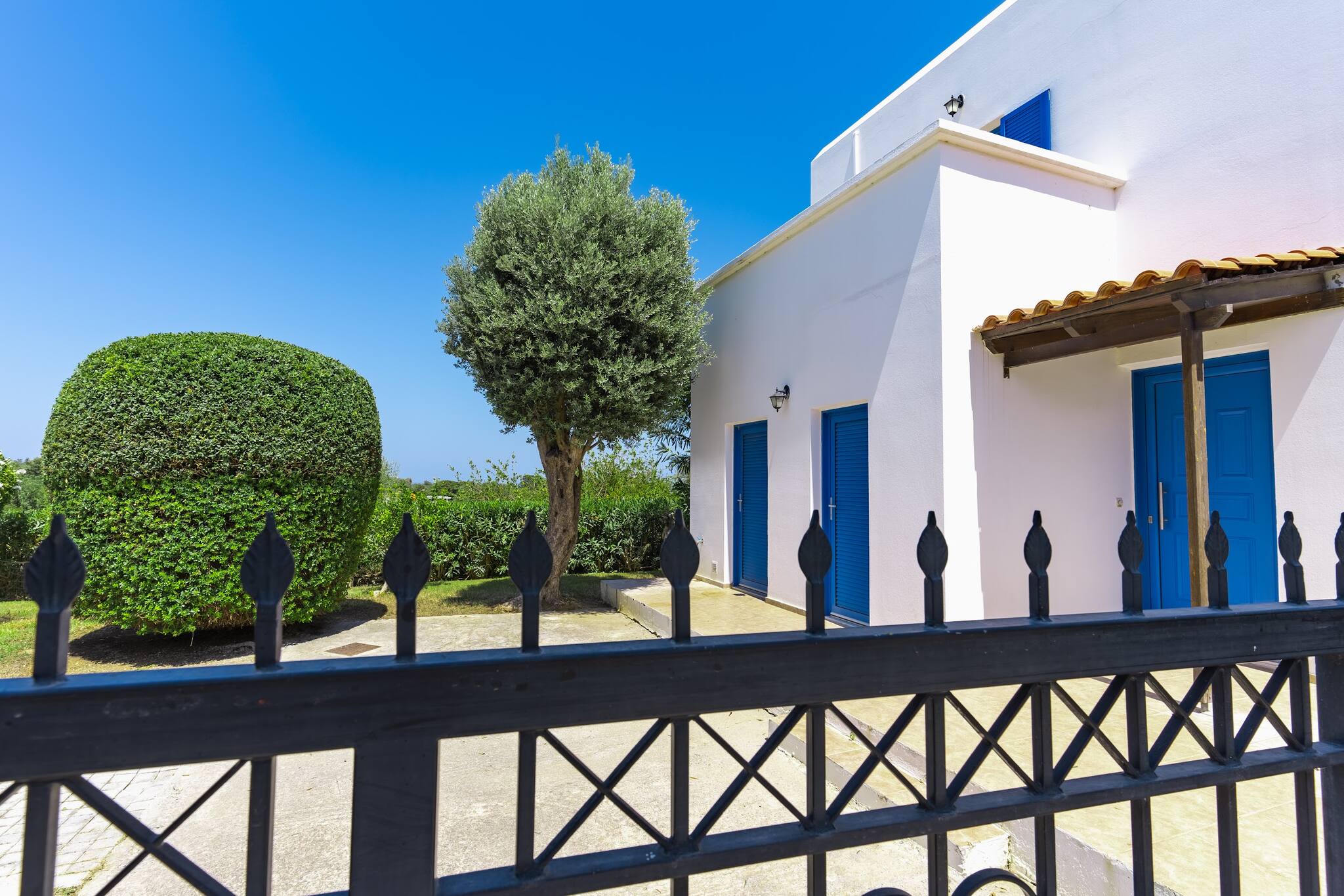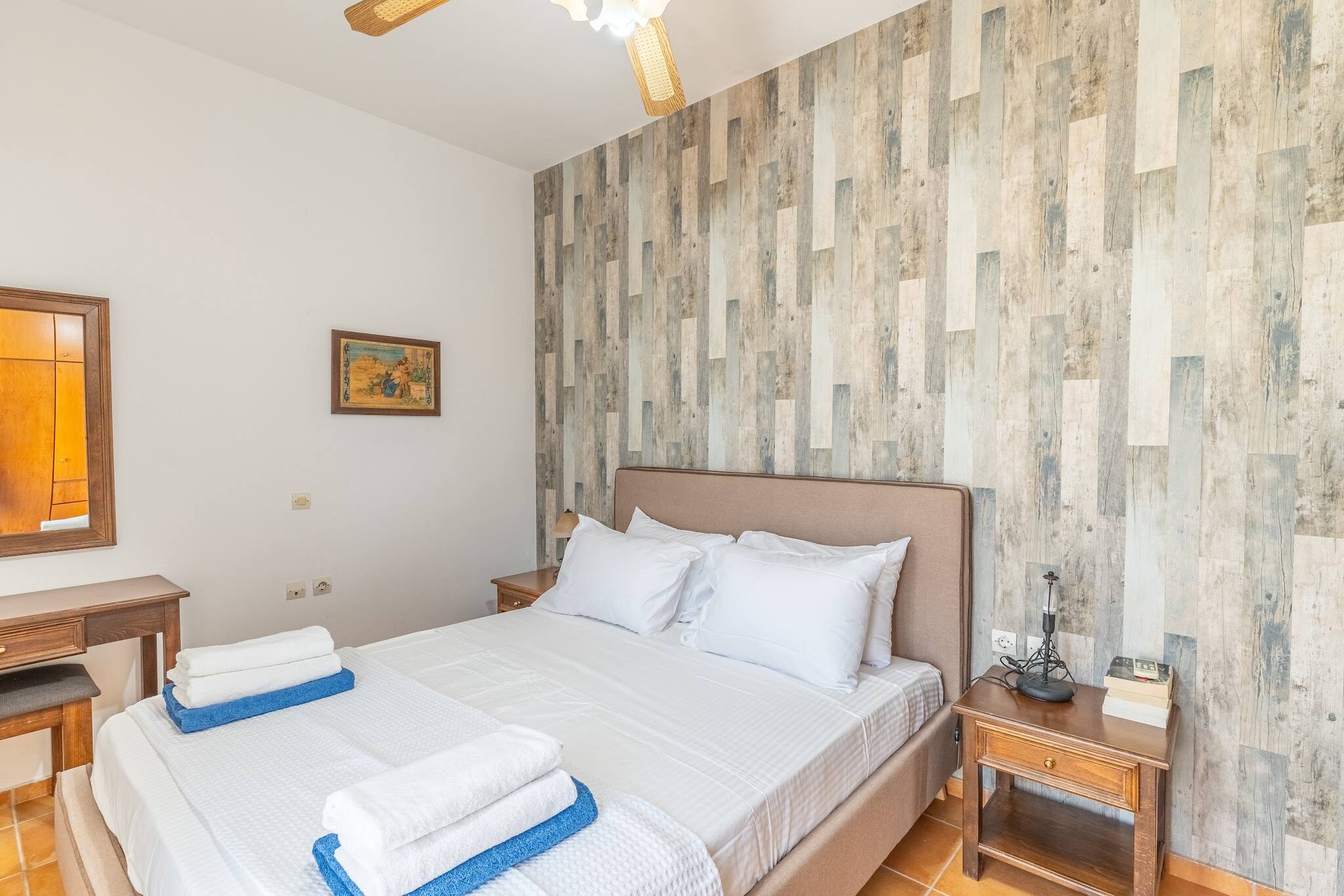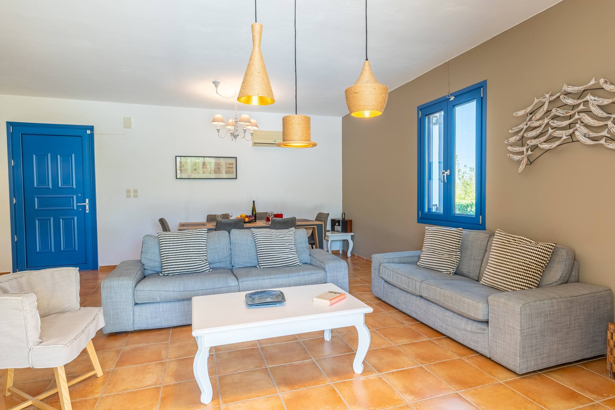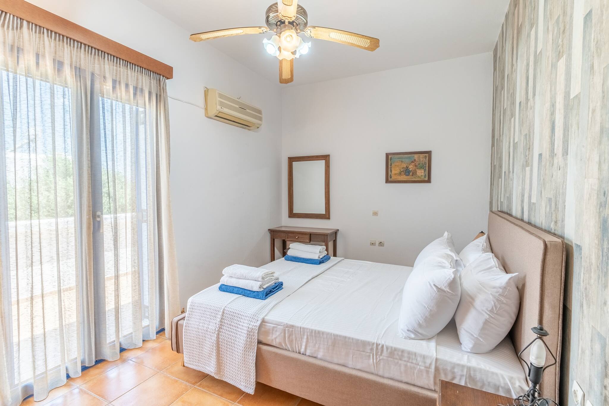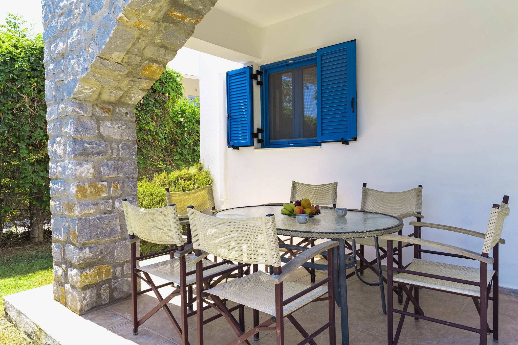 • Charming Greek Design: Embrace the traditional Greek aesthetic with Villa Irini’s whitewashed walls, striking blue shutters, and rustic stone elements, all set against the beautiful backdrop of the Cretan landscape.