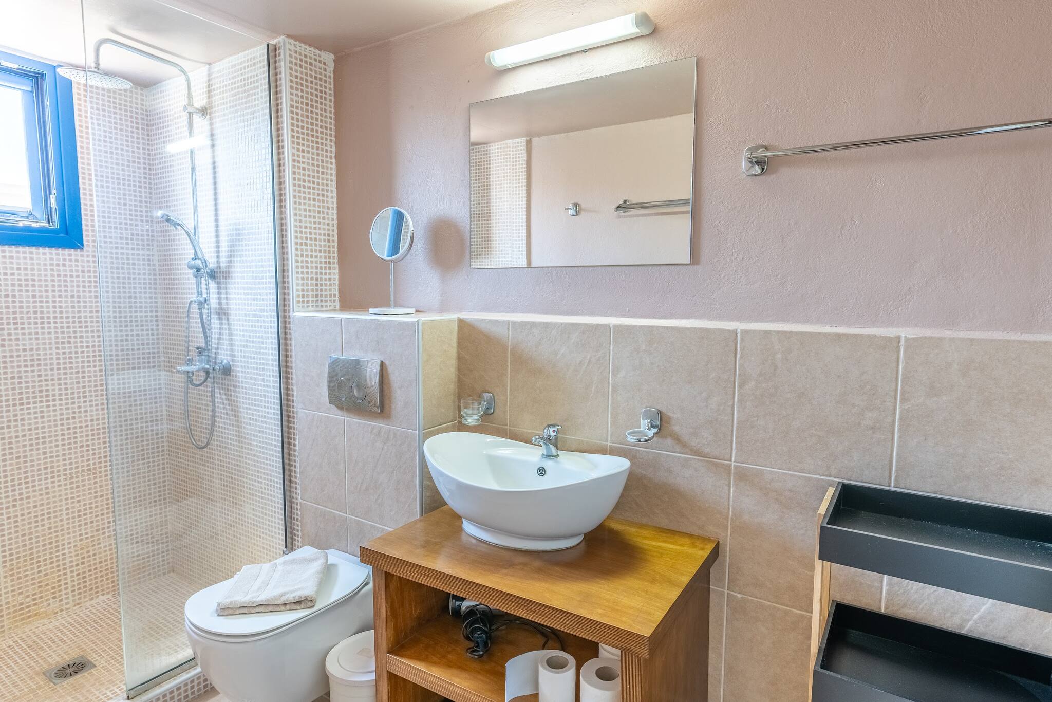 The villa offers an outdoor parking space, where you can safely park your car. For exploring Crete’s beautiful landscapes and beaches, a car is highly recommended.