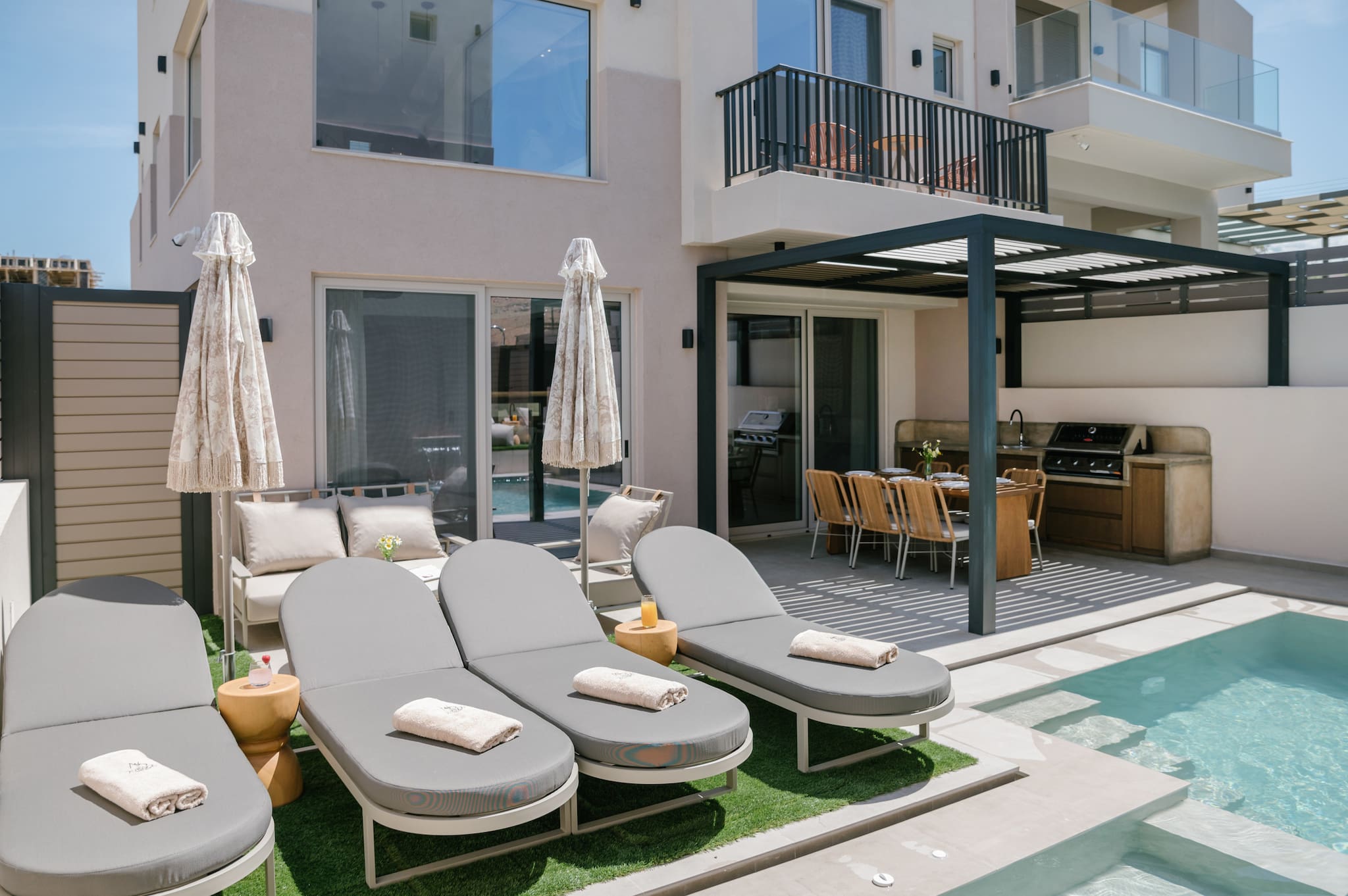 Each villa boasts a fully equipped, modern kitchen, featuring high-end appliances, a Nespresso machine, and a filter coffee machine — perfect for preparing gourmet meals. For outdoor cooking enthusiasts, built-in gas BBQs and shaded alfresco dining areas invite you to savor meals in the warm Mediterranean breeze.