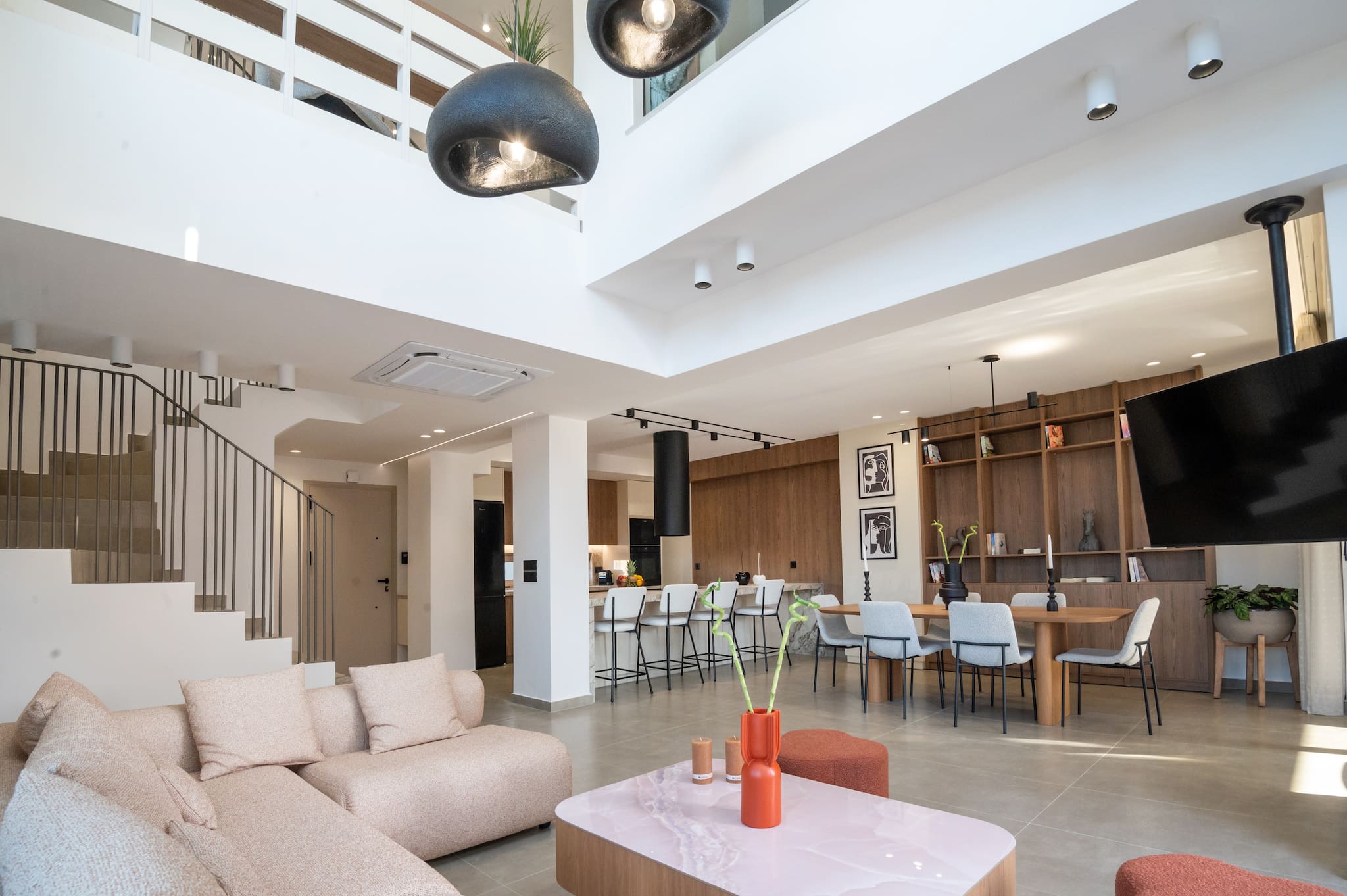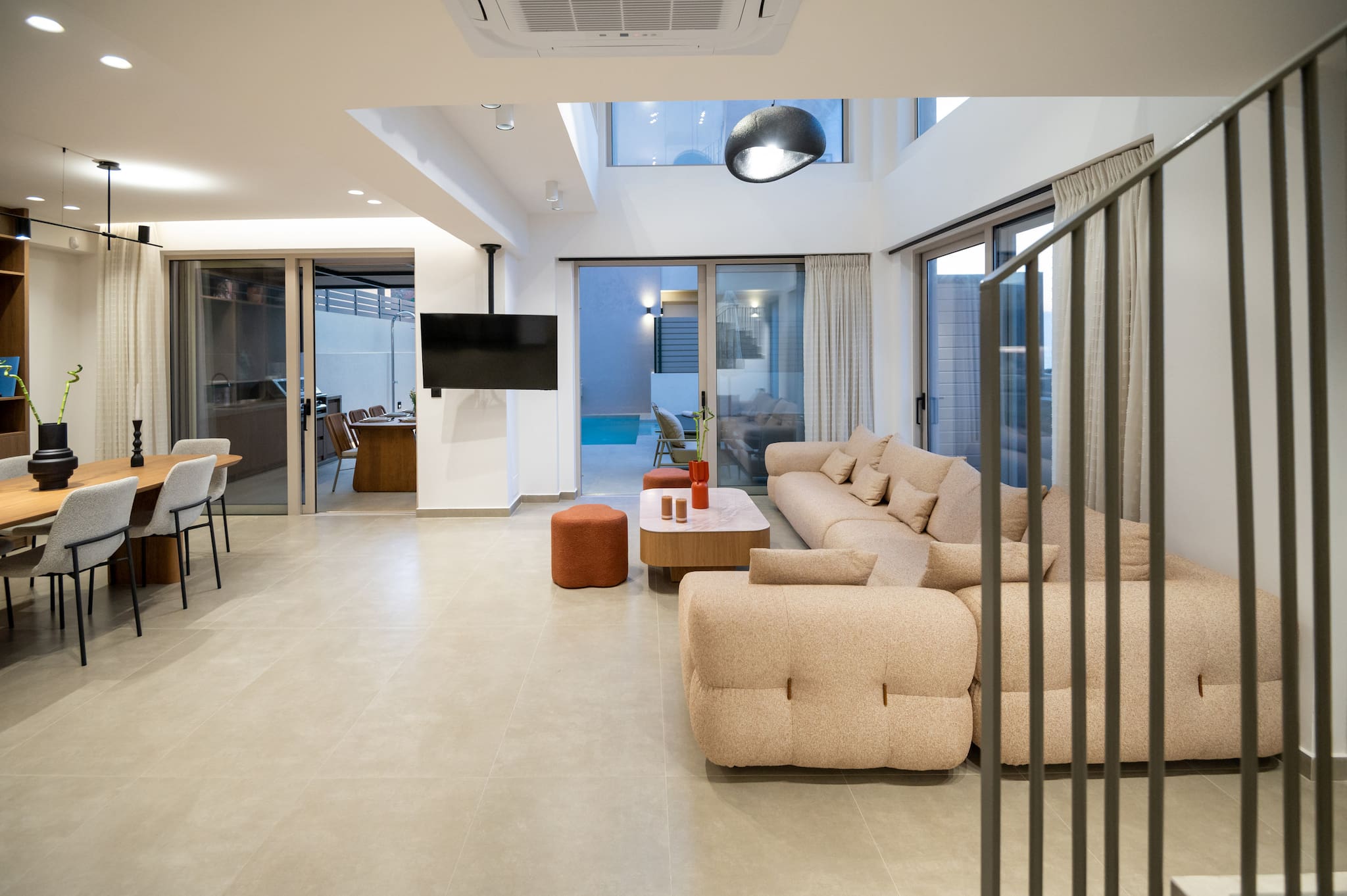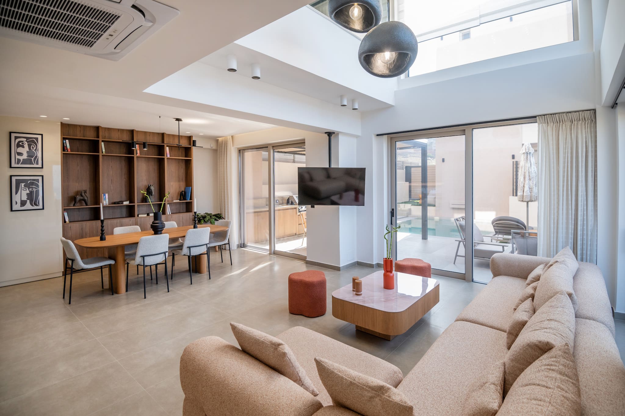 The charming village of Panormo is the perfect place to unwind, with its authentic taverns serving fresh local dishes, delightful cafes, and quaint shops selling handmade goods. The property is conveniently located within walking distance of Panormo’s village center and its beautiful sandy beaches, supermarkets and grocery stores, allowing you to easily enjoy the relaxing seaside atmosphere.