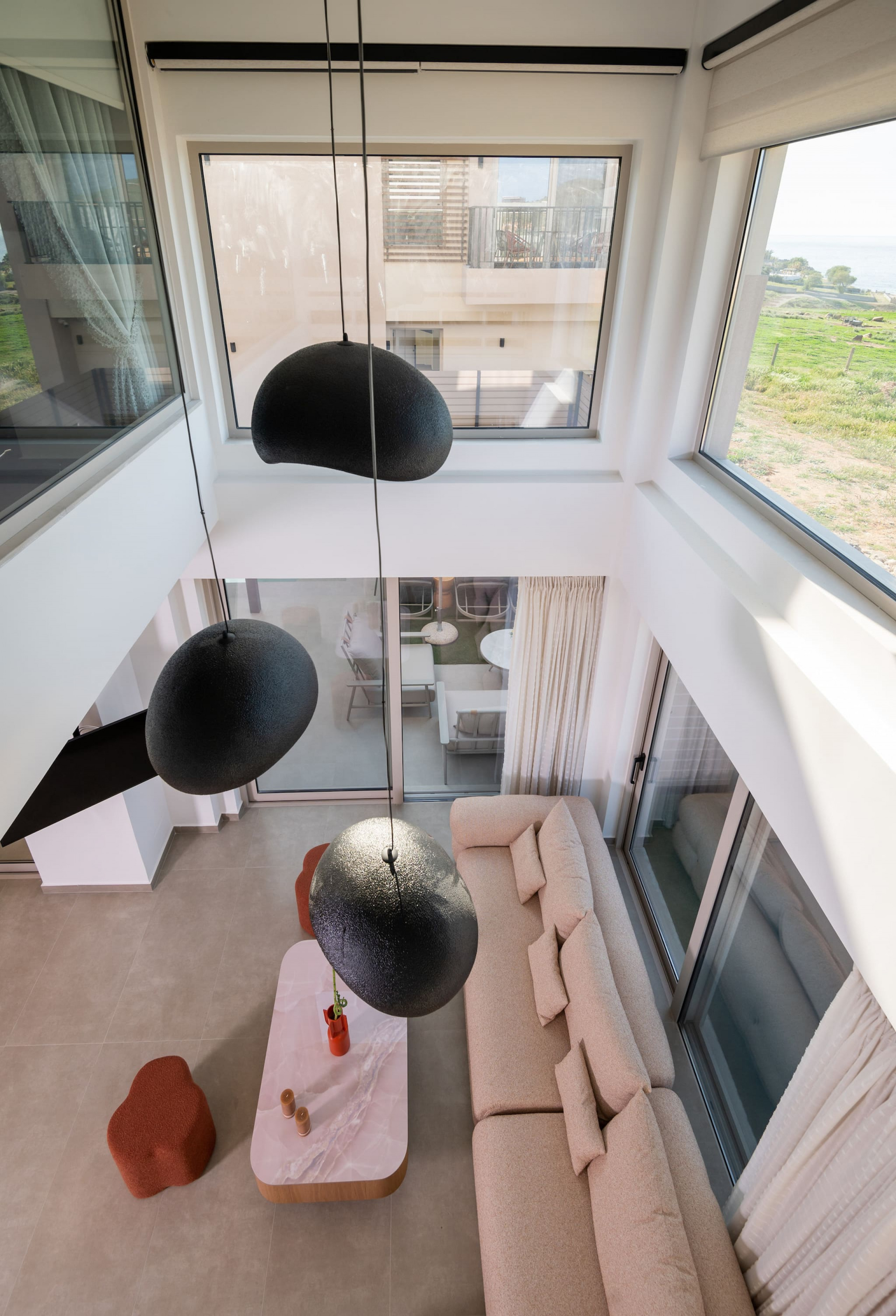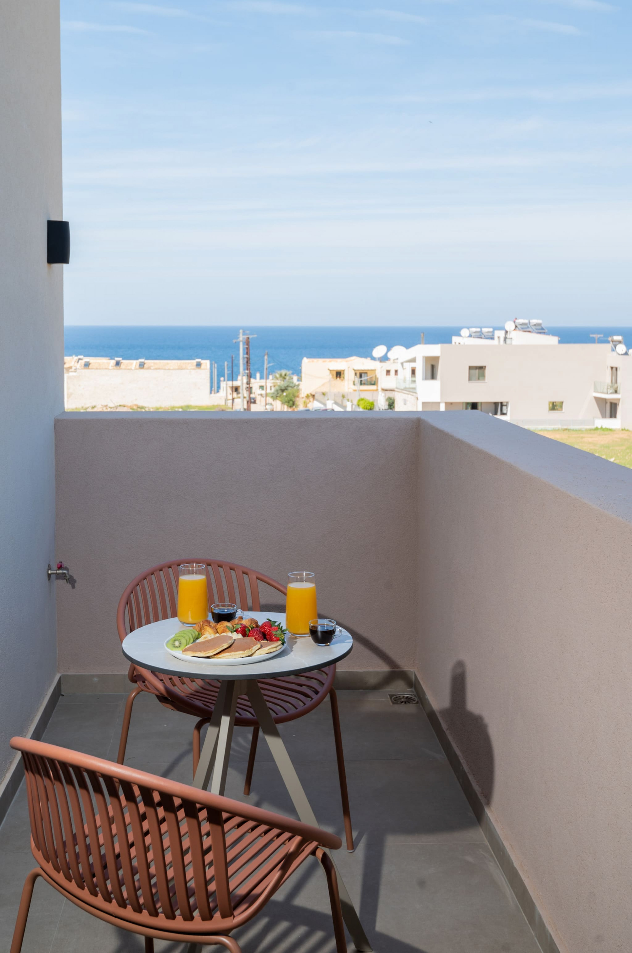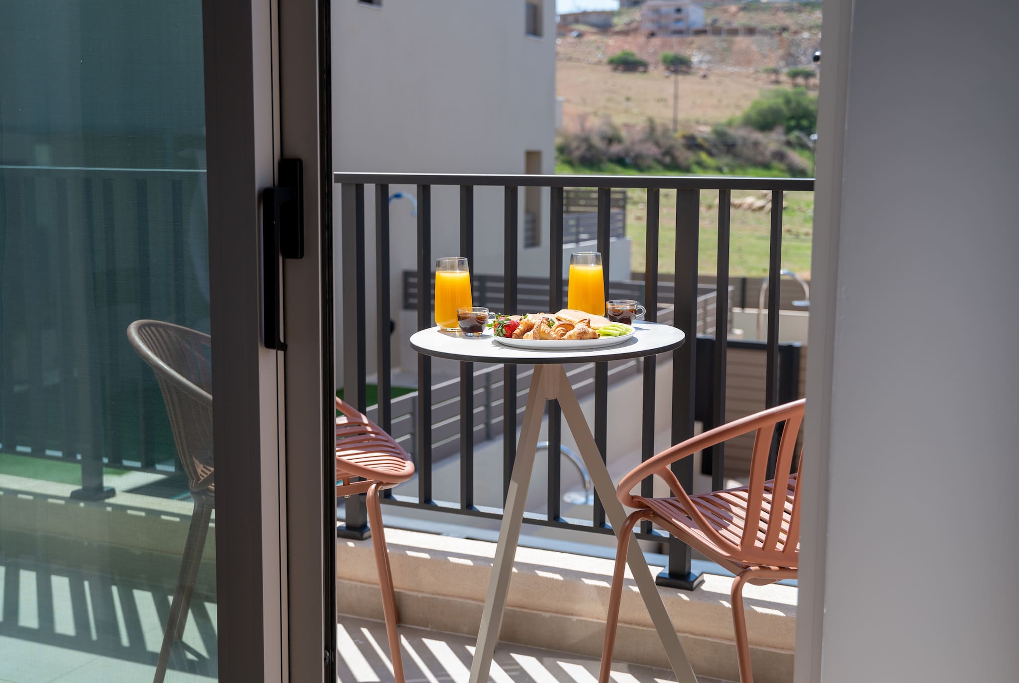 Upstairs, private terraces in both villas offer sweeping views of the sea and countryside, making them perfect for morning coffee, sunset cocktails, or stargazing under the clear Cretan sky.