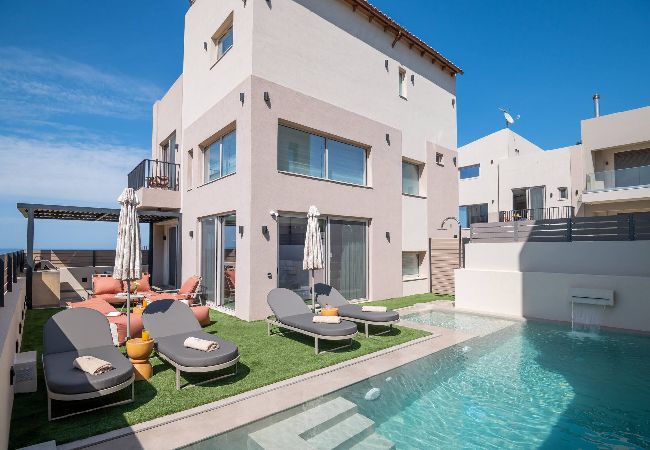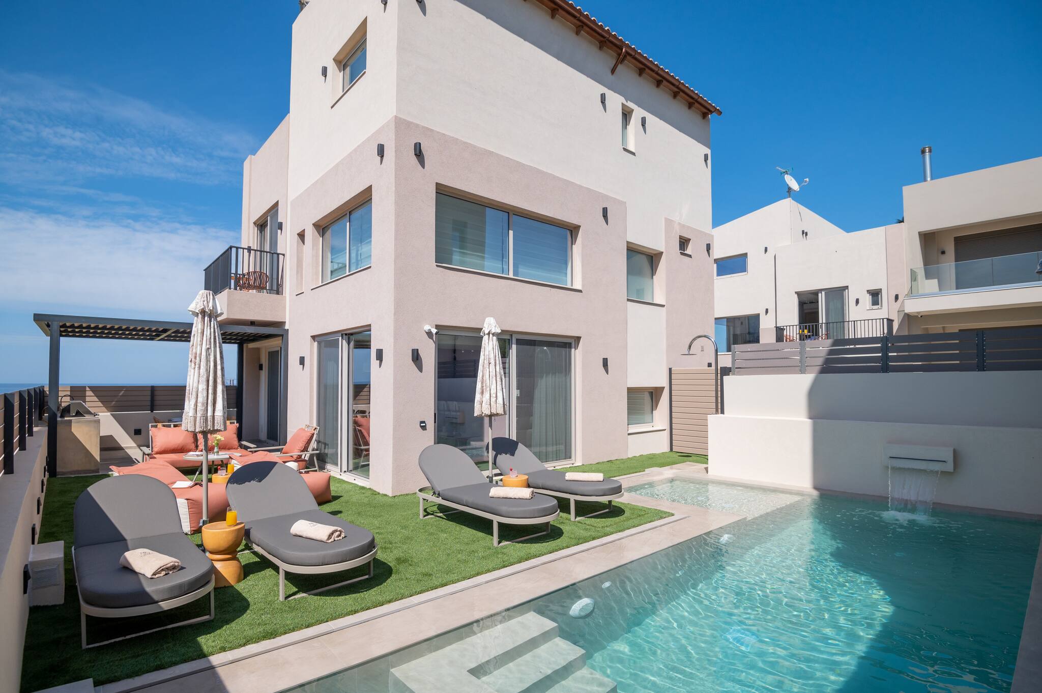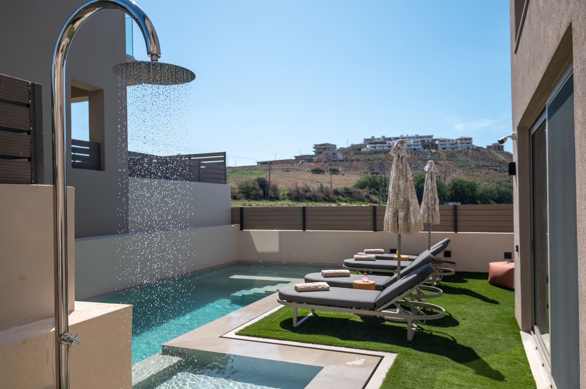 Welcome to Avissos Villa I, one of two extraordinary properties at the brand new Avissos Resort — a haven of unparalleled luxury in the picturesque Panormo Village. Situated just 600 meters from the seaside, this stunning villa offers the perfect combination of tranquility, sophistication, and stunning sea views, making it an ideal escape for families, friends, or anyone seeking a lavish retreat on the beautiful island of Crete.