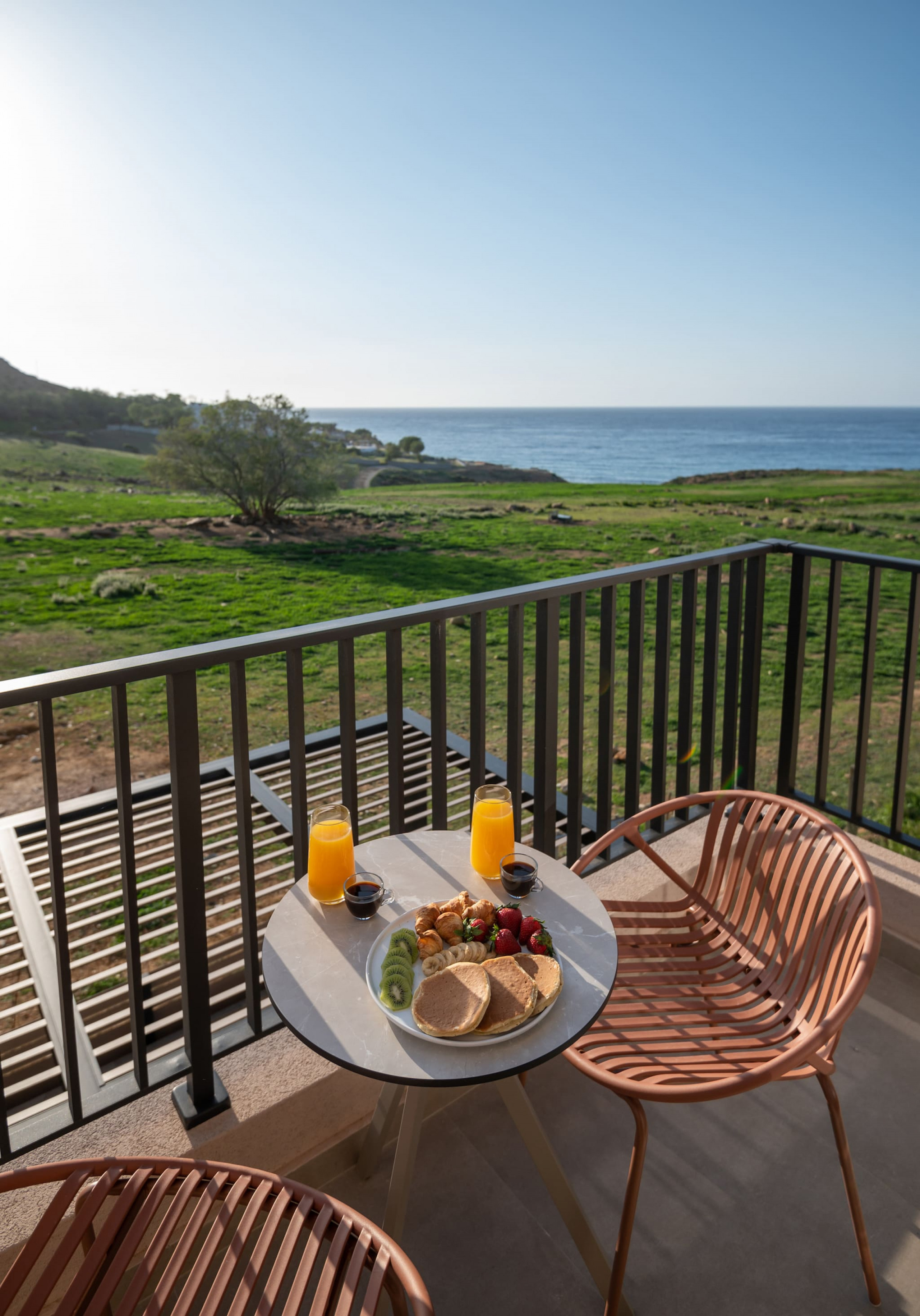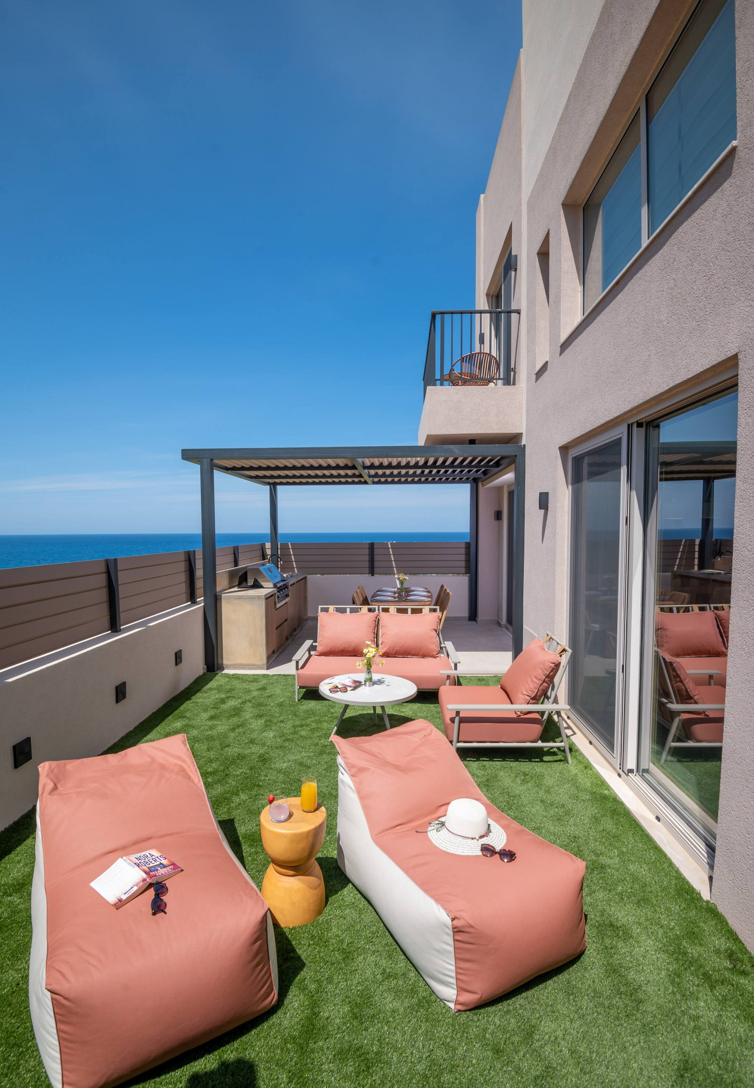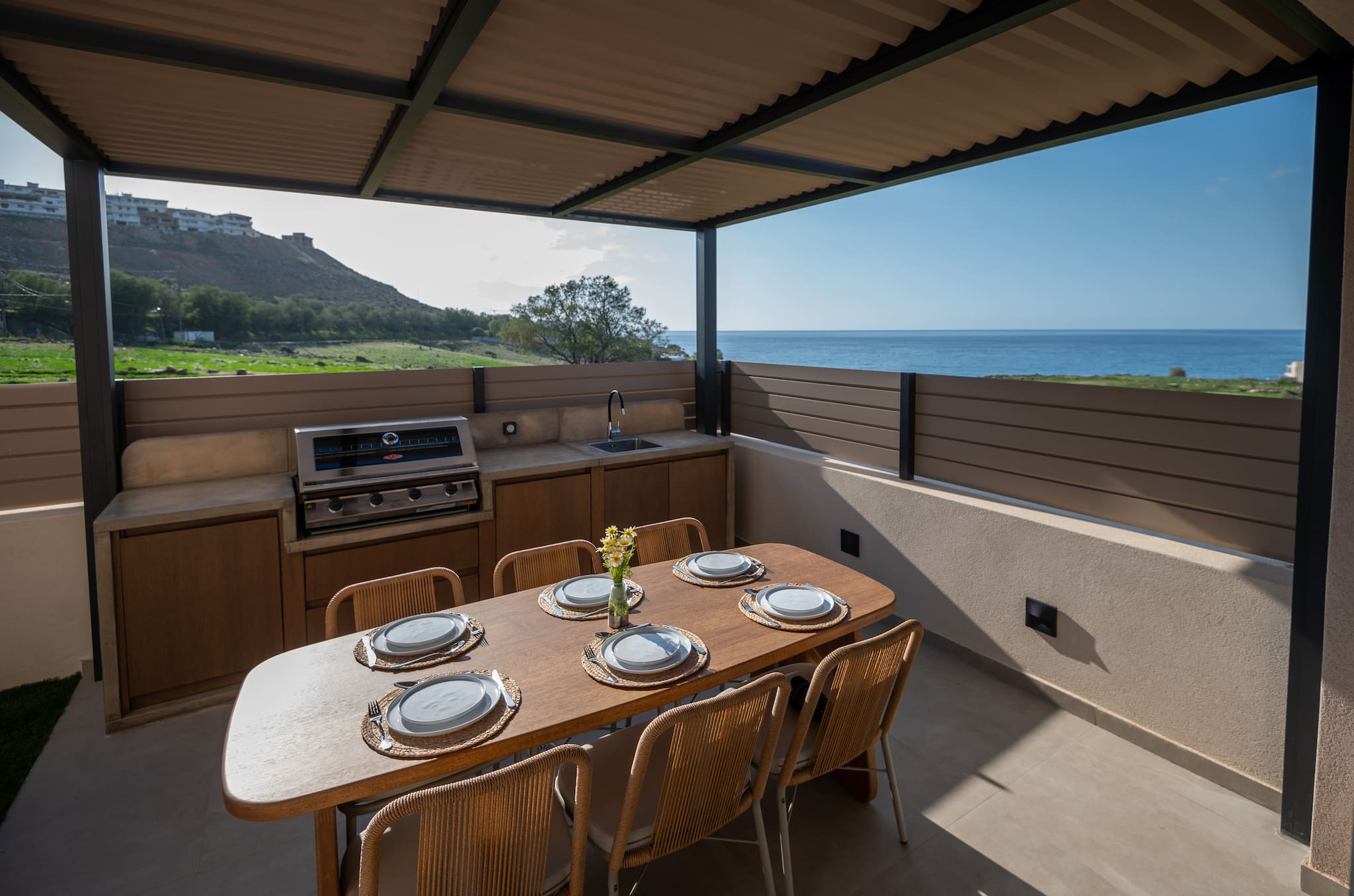 The upper-floor terrace offers panoramic sea views, ideal for enjoying a quiet morning coffee, reading a book, or savoring a glass of wine at sunset.