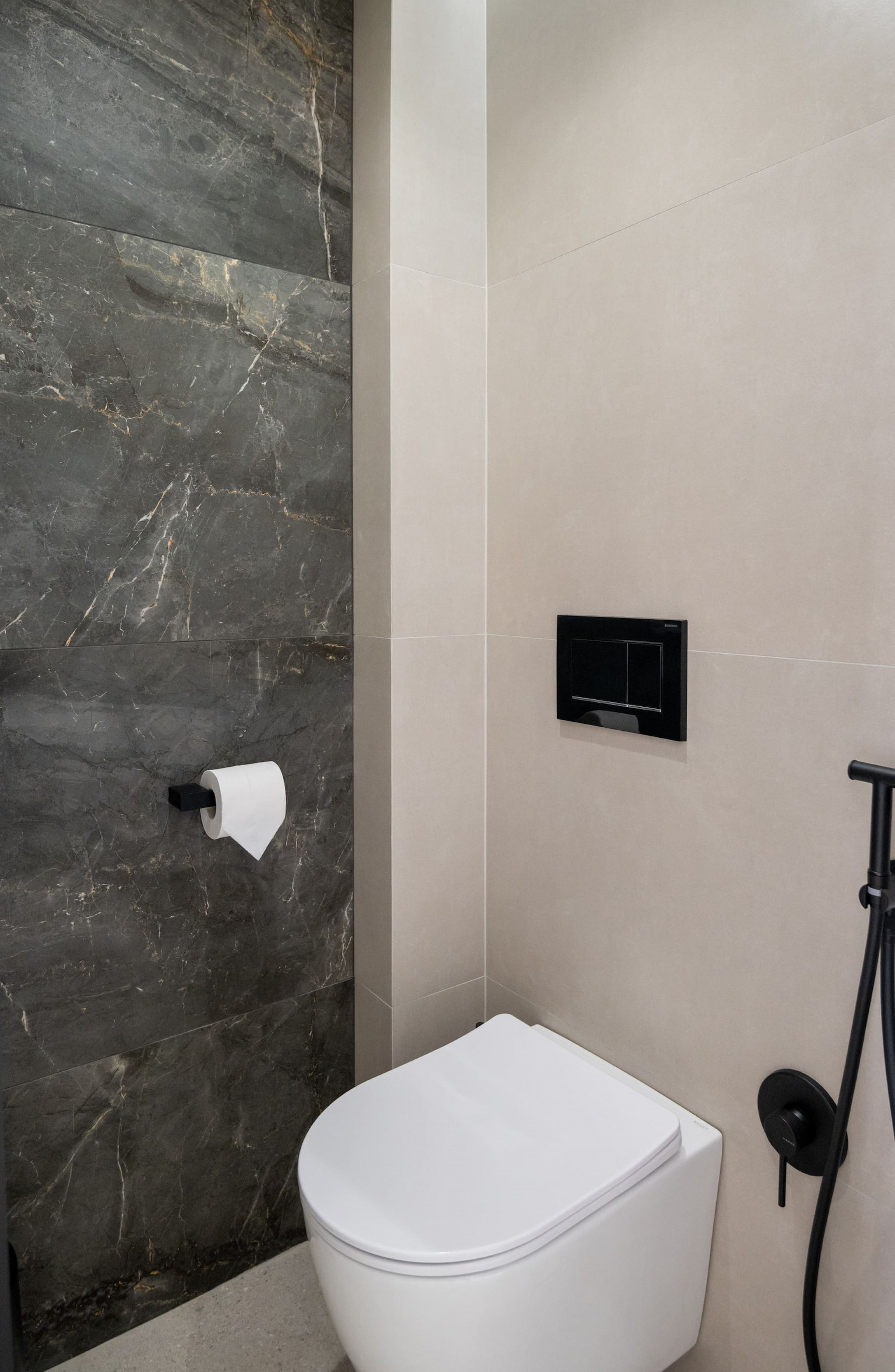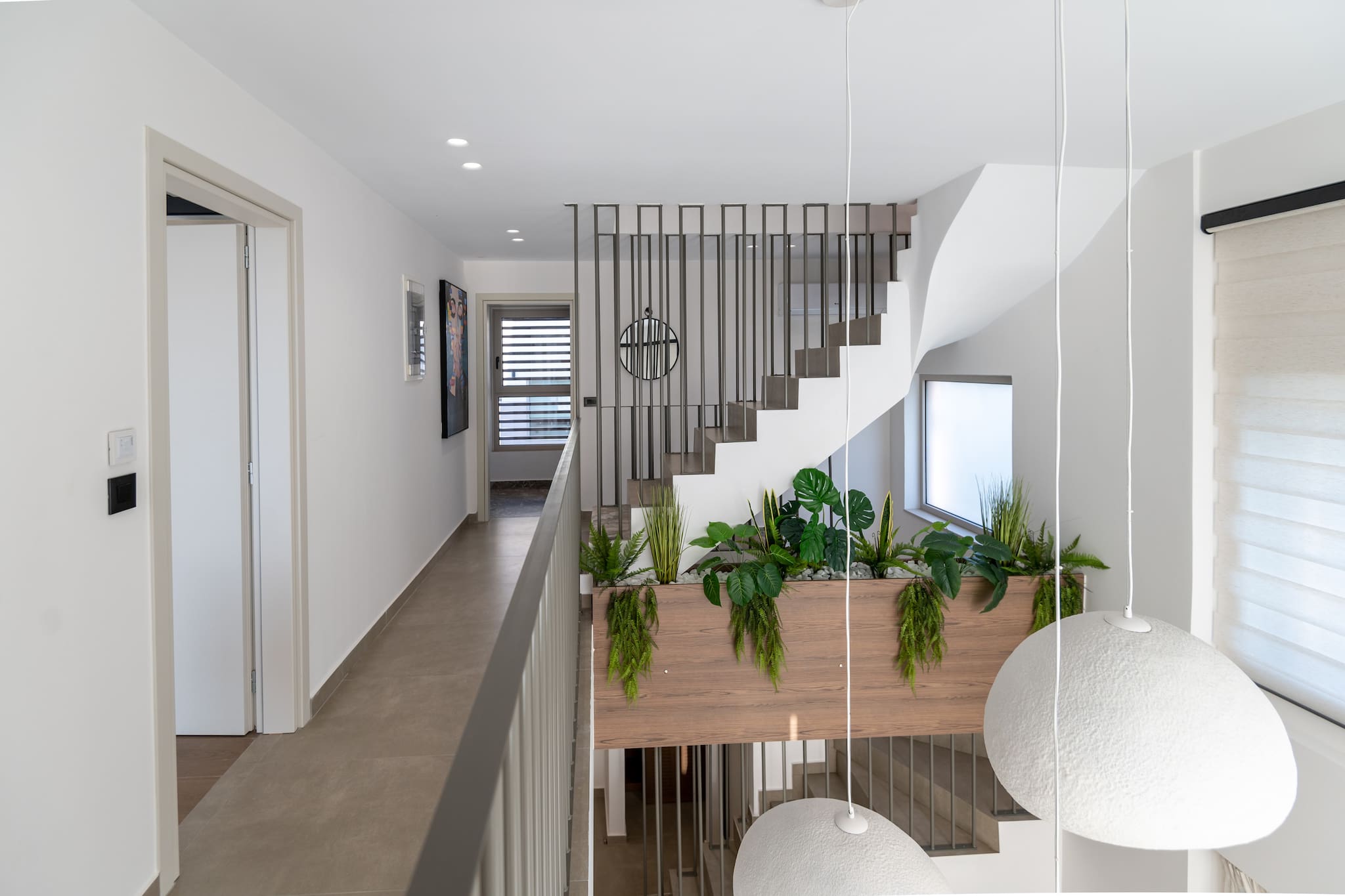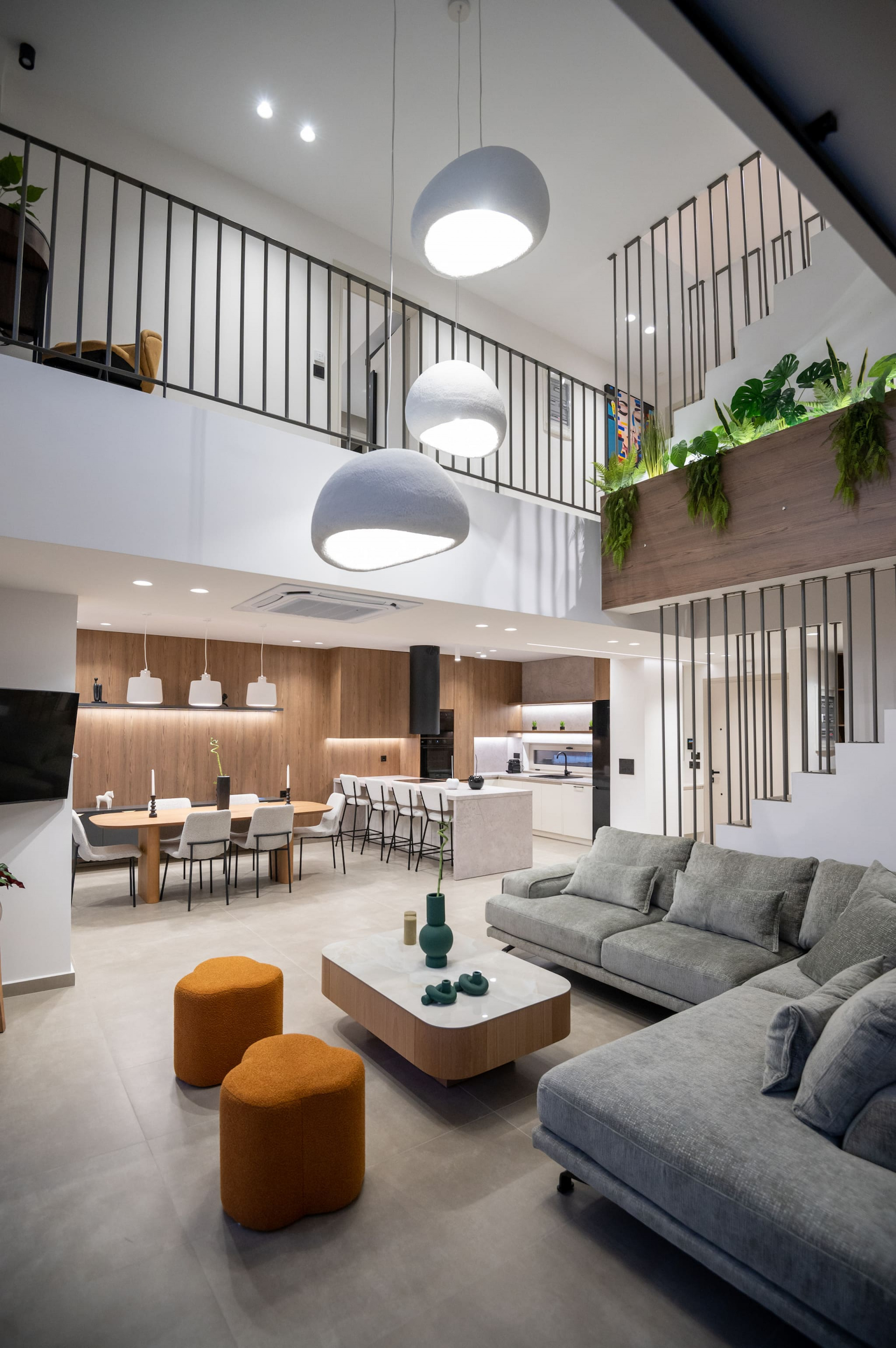 This spacious, three-bedroom villa accommodates up to 6 guests. The villa’s design is a perfect blend of contemporary elegance and Mediterranean charm, with luxurious finishes and premium materials used throughout. Each bedroom has been thoughtfully designed to ensure a restful night’s sleep, featuring high-end furnishings, soft linens, blackout curtains, sea views, and smart TVs (32 inches) with both Greek and international channels. One bedroom features a king-size bed (180x200) that can be converted into two single beds, while the other two offer queen-size beds (160x200) for ultimate comfort.
