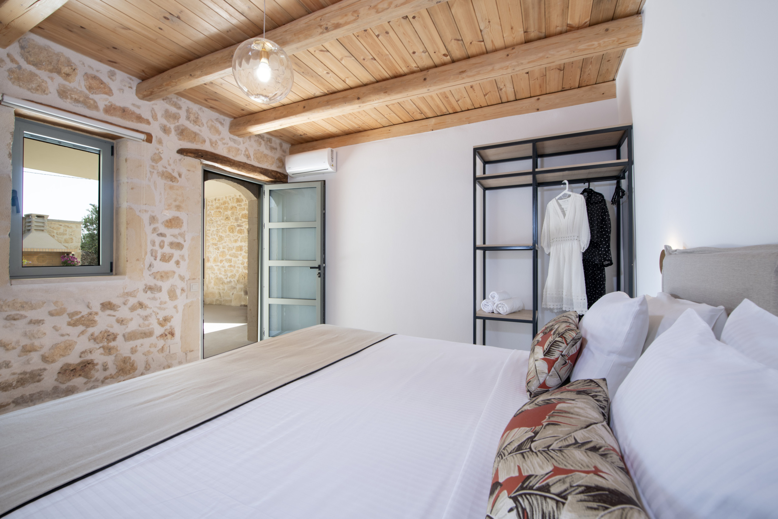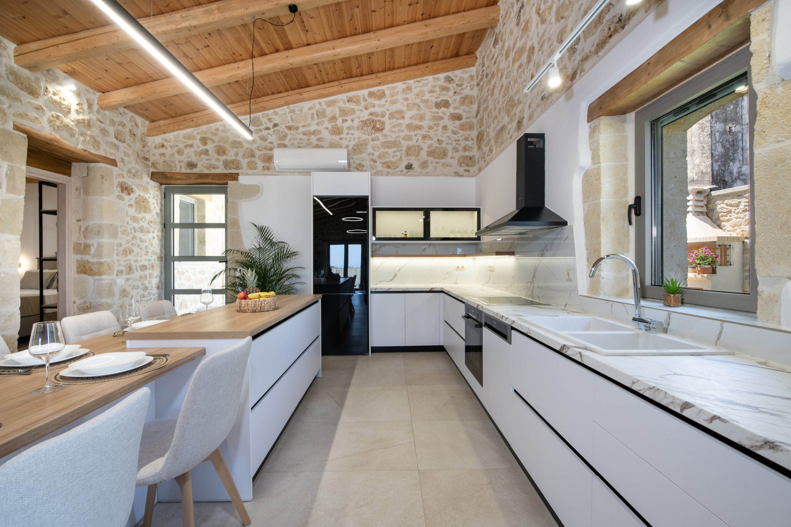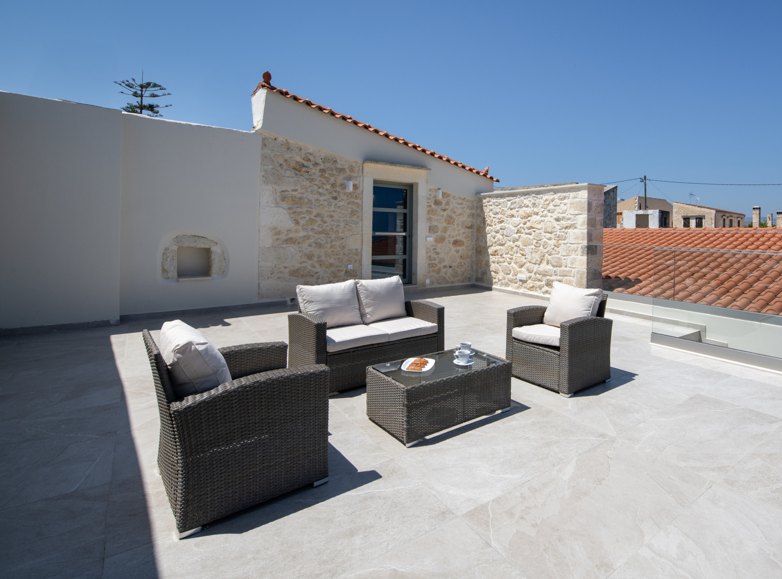 The nearest taverna, O Mikros Antonis, is right in the village of Roupes, only 200 meters from your doorstep. Nestled in this tranquil village, the villa offers easy access to hiking and cycling routes, authentic Cretan culture, and the golden beaches of Skaleta (8 km). The historic town of Rethymno is just a 30-minute drive away. Nearby Stavromenos, a short 10-minute drive, provides additional conveniences including a supermarket, bakery, butcher, and charming local tavernas. The villa’s prime location also ensures easy access to all the renowned beaches and attractions of Rethymno, all within a 20-minute drive.