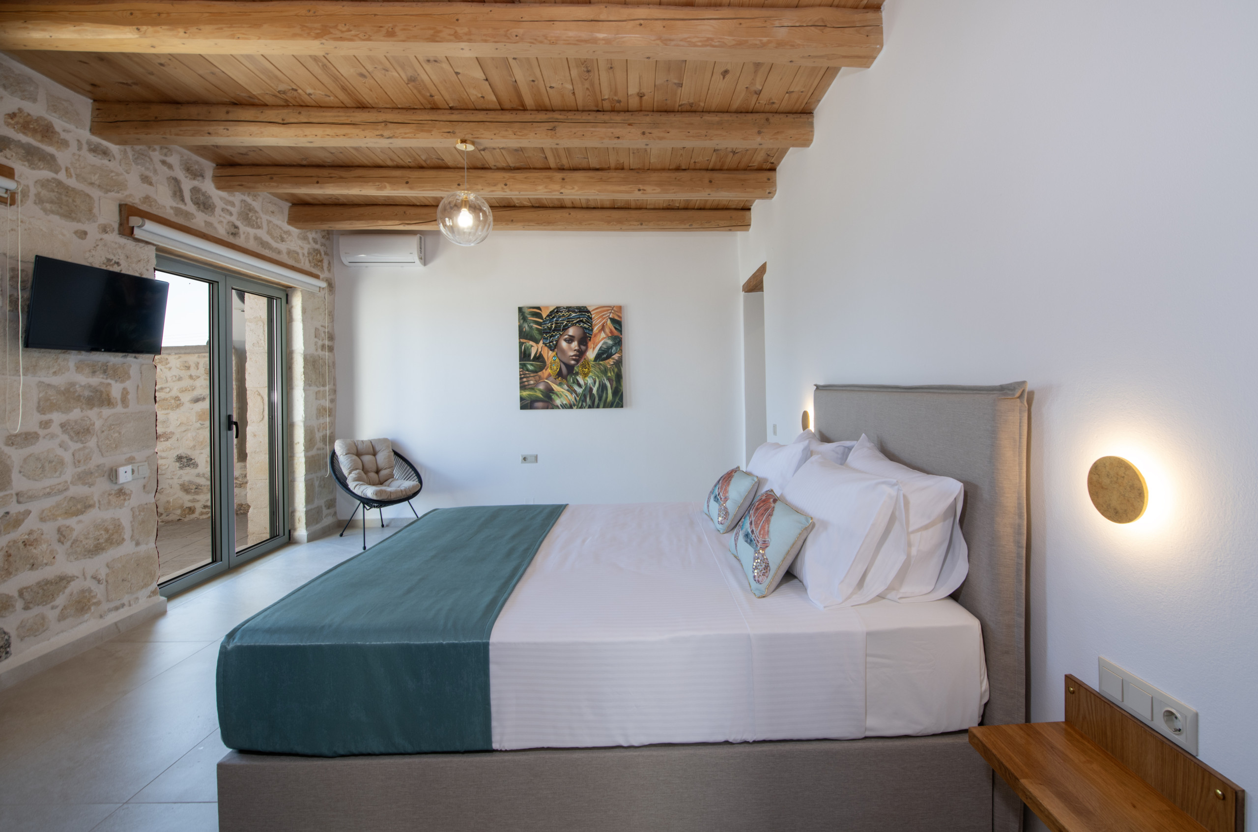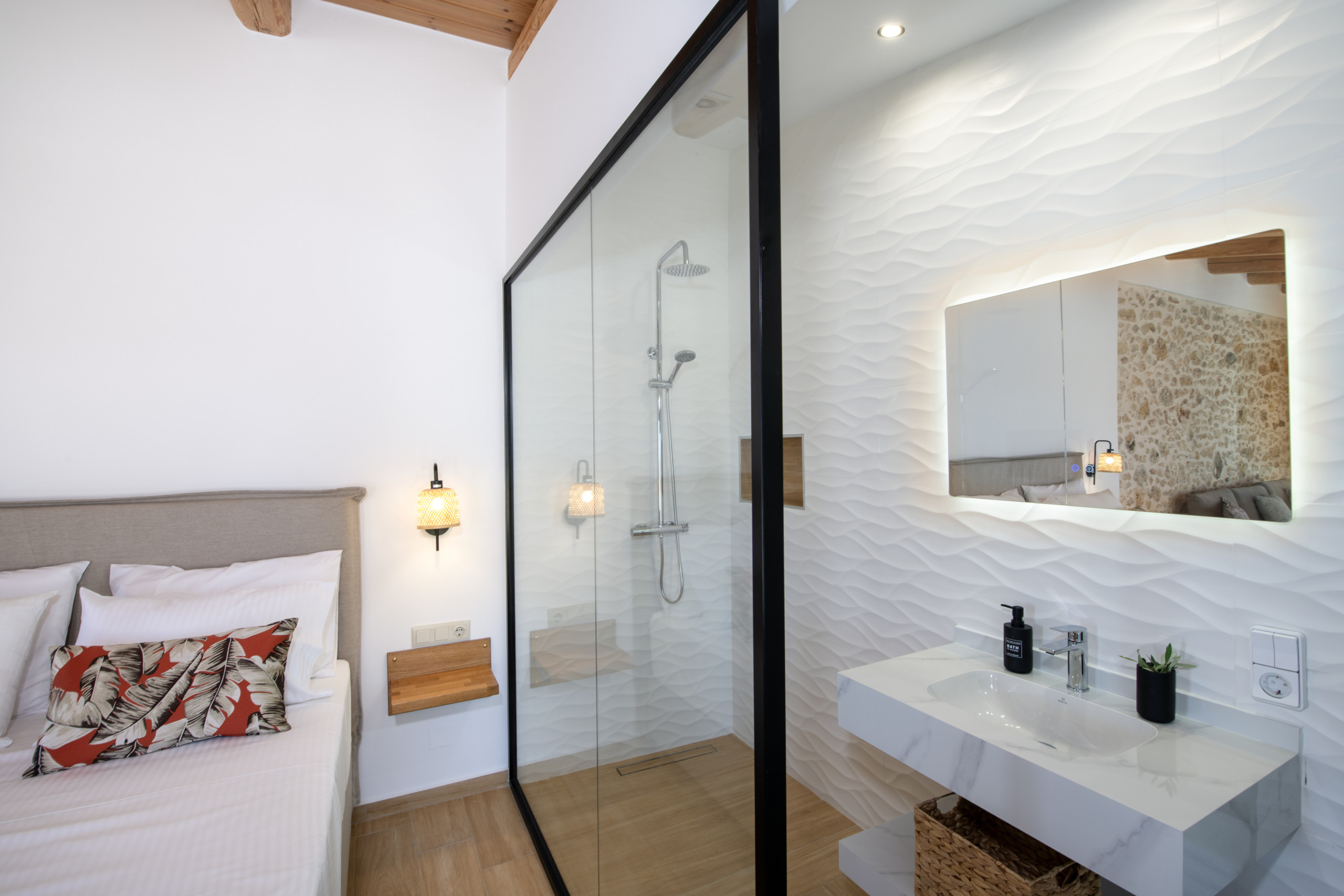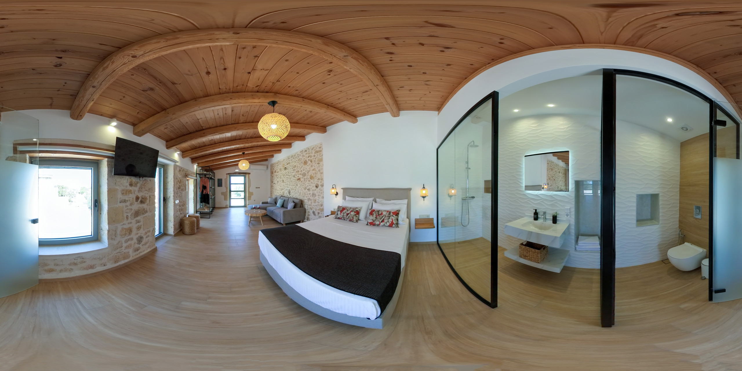 The nearest taverna, O Mikros Antonis, is right in the village of Roupes, only 200 meters from your doorstep. Nestled in this tranquil village, the villa offers easy access to hiking and cycling routes, authentic Cretan culture, and the golden beaches of Skaleta (8 km). The historic town of Rethymno is just a 30-minute drive away. Nearby Stavromenos, a short 10-minute drive, provides additional conveniences including a supermarket, bakery, butcher, and charming local tavernas. The villa’s prime location also ensures easy access to all the renowned beaches and attractions of Rethymno, all within a 20-minute drive.