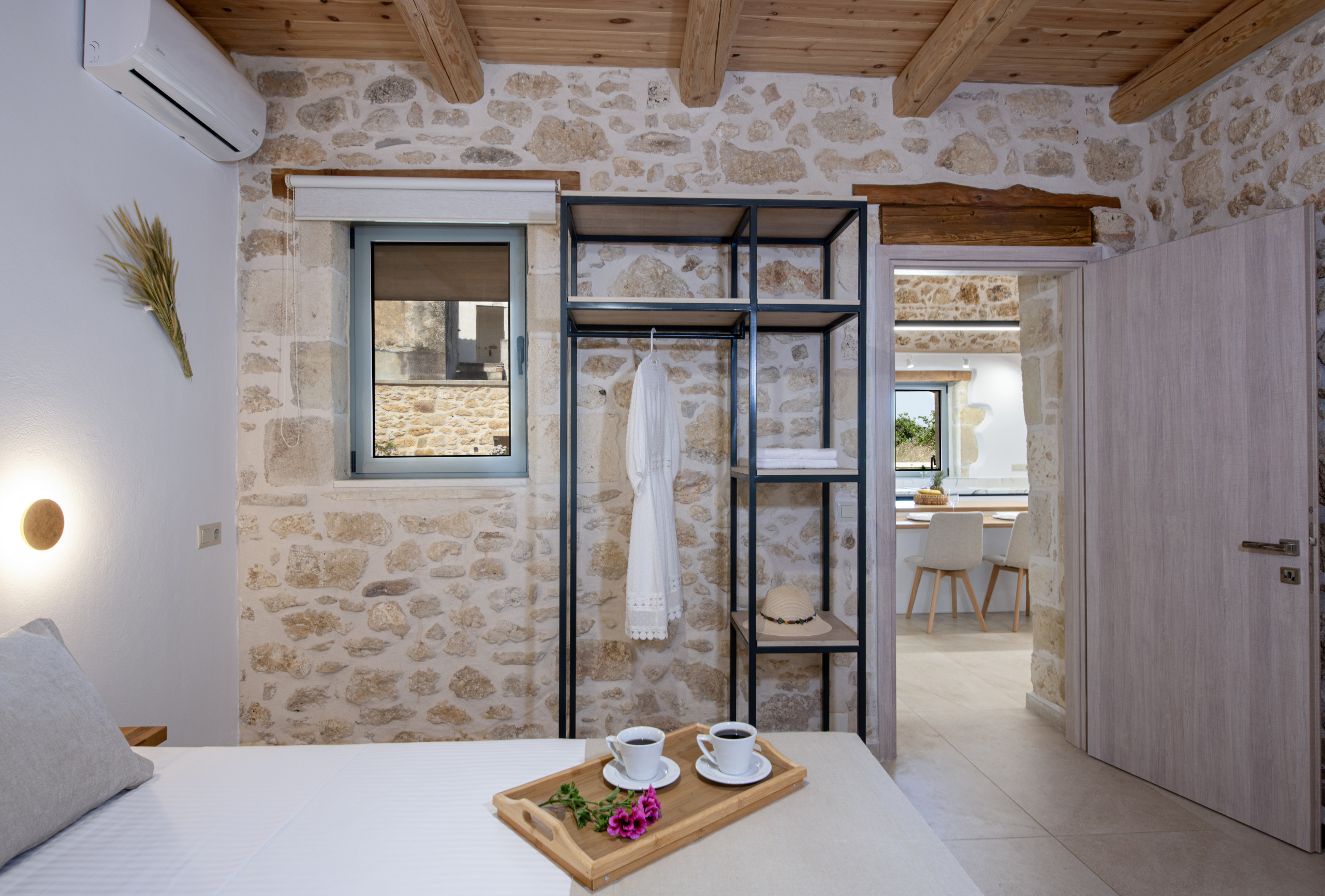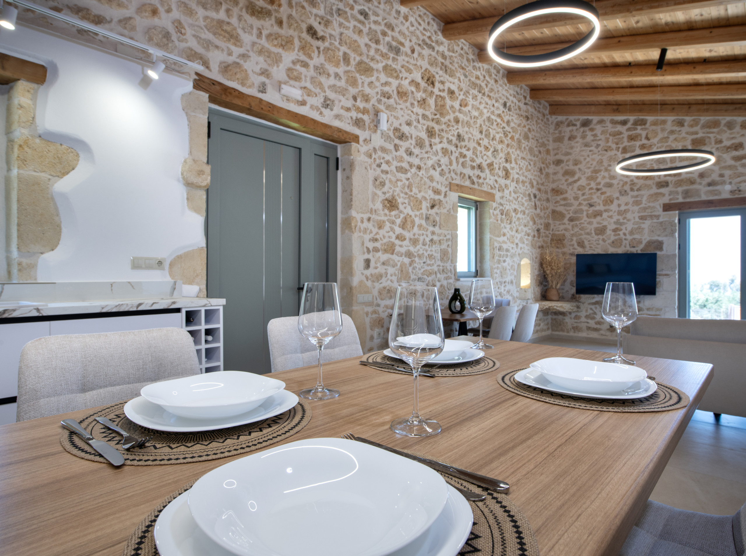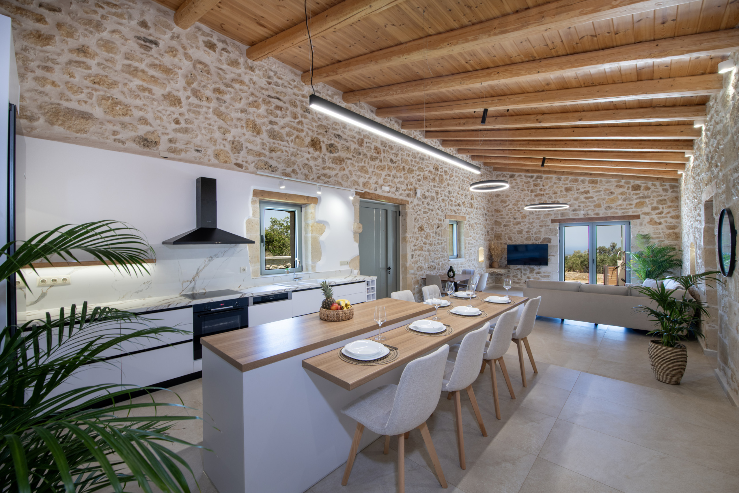 Unwind by the 9.3 × 4.5 m pool (1.5 m deep) and the adjoining children’s pool, both offering panoramic sea views and surrounded by the serene Cretan landscape. The pool area is equipped with 10 sunbeds and 5 umbrellas, providing ample space for all guests to relax comfortably under the Cretan sun. Enjoy peaceful evenings dining alfresco by the charcoal BBQ, stargazing under clear night skies, and embracing the quiet, relaxing atmosphere that makes Fabrica Villa a true sanctuary.