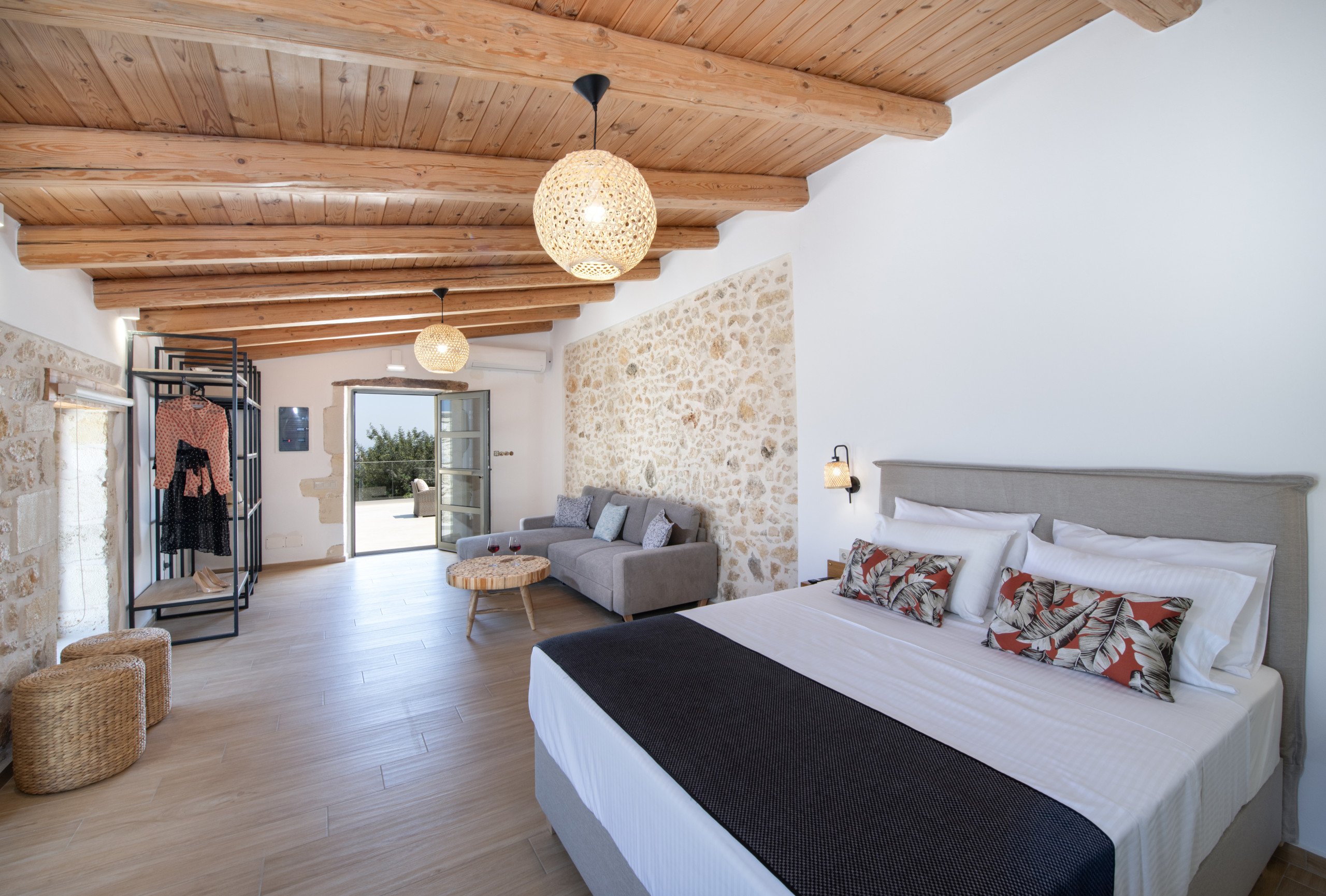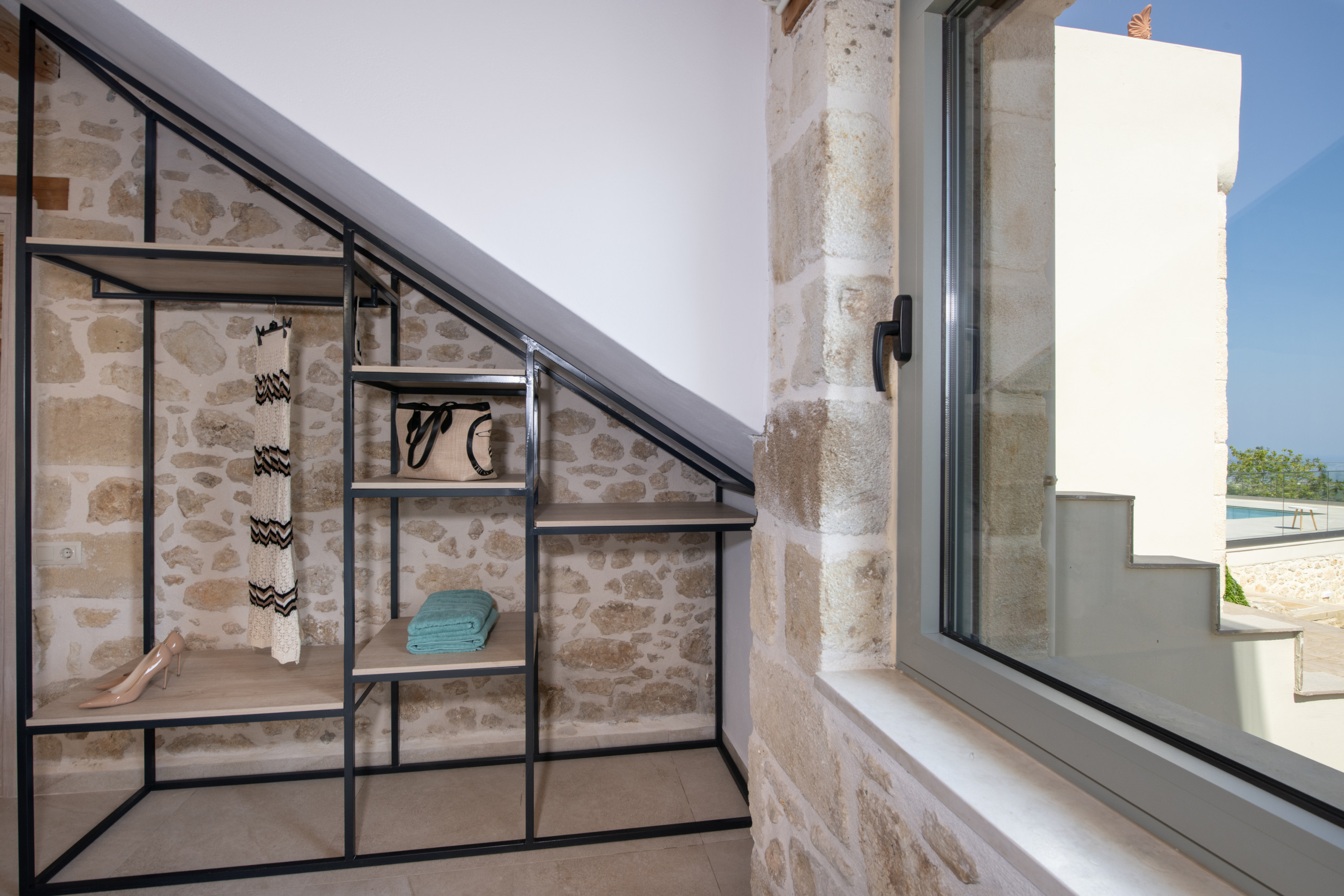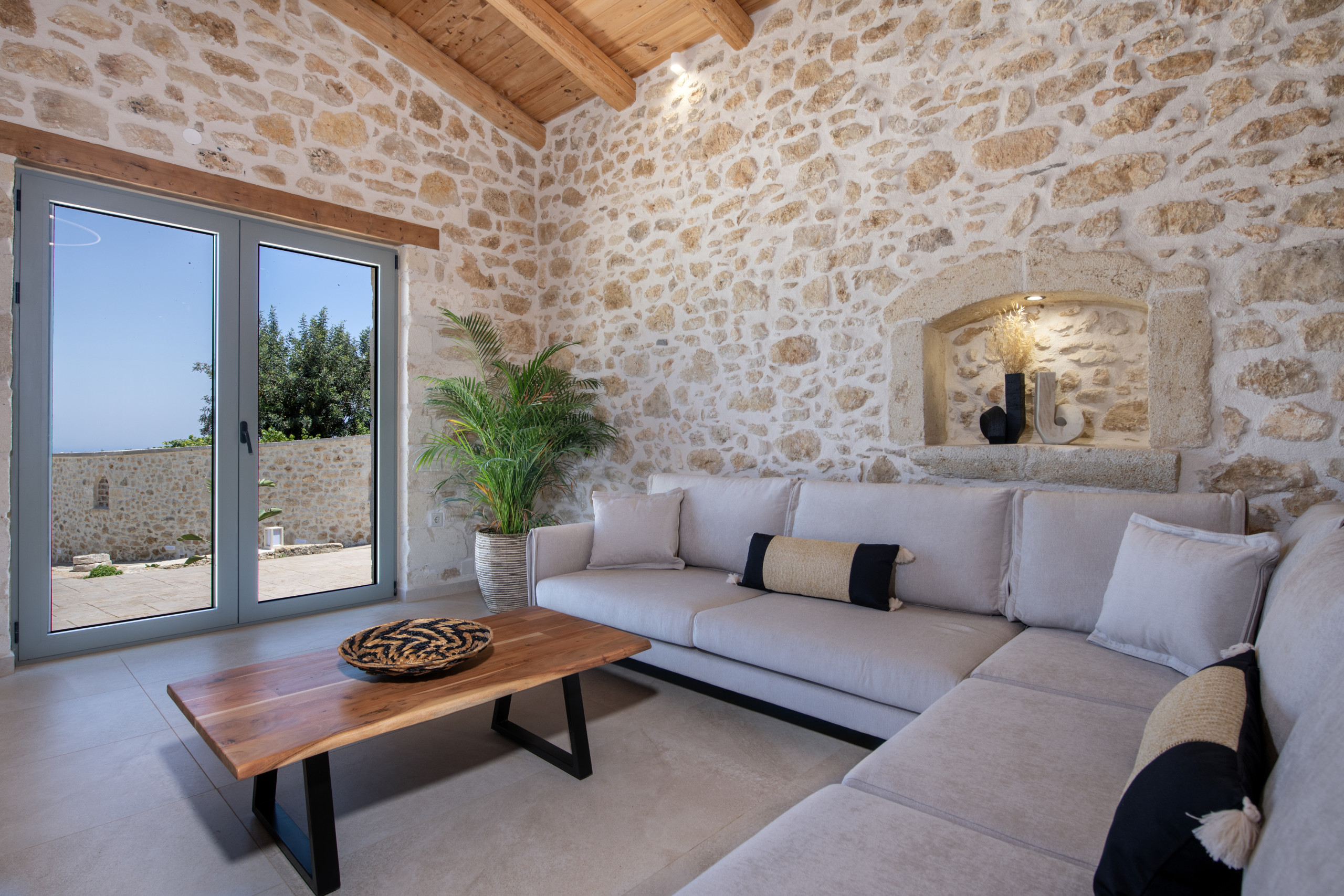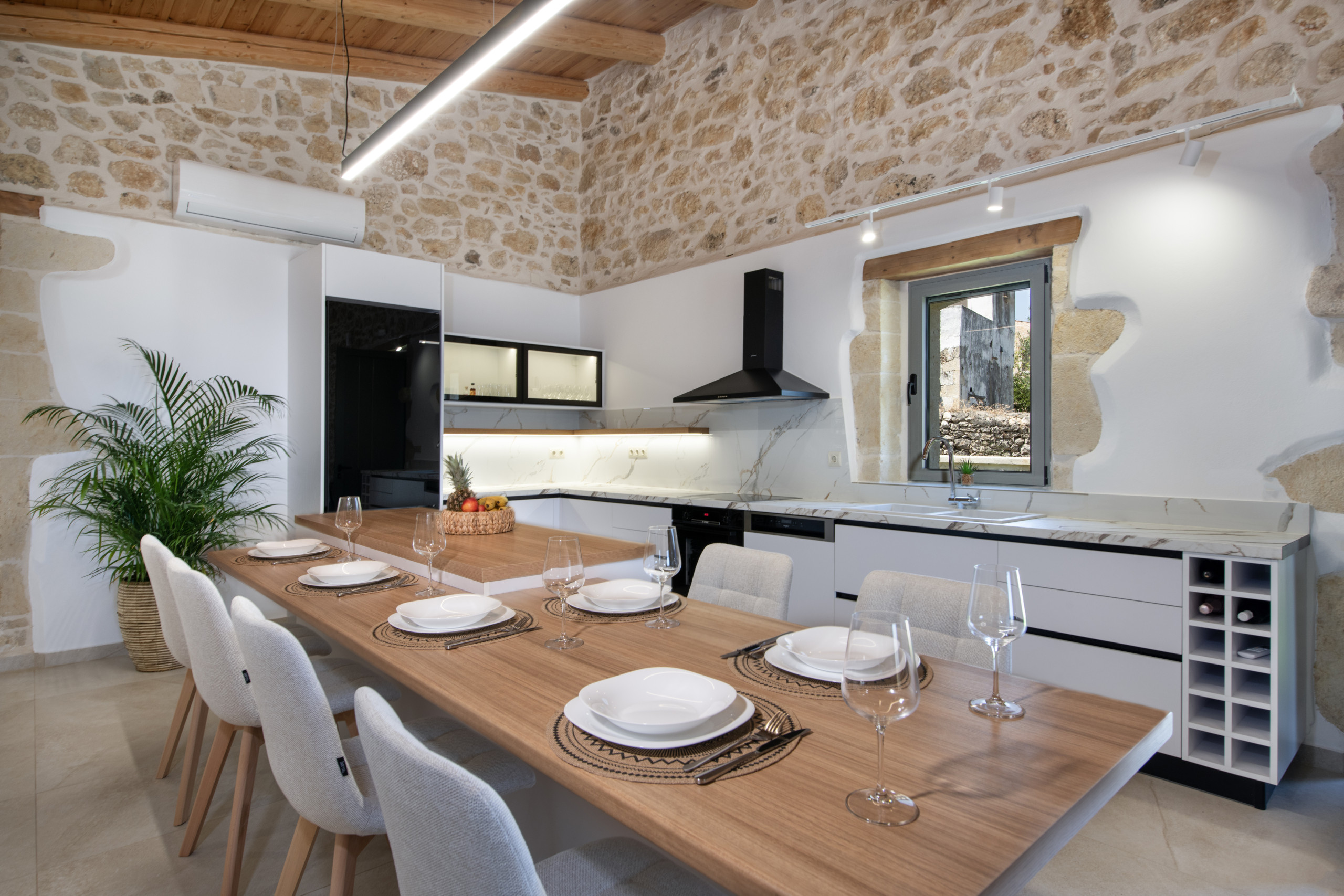 Unwind by the 9.3 × 4.5 m pool (1.5 m deep) and the adjoining children’s pool, both offering panoramic sea views and surrounded by the serene Cretan landscape. The pool area is equipped with 10 sunbeds and 5 umbrellas, providing ample space for all guests to relax comfortably under the Cretan sun. Enjoy peaceful evenings dining alfresco by the charcoal BBQ, stargazing under clear night skies, and embracing the quiet, relaxing atmosphere that makes Fabrica Villa a true sanctuary.