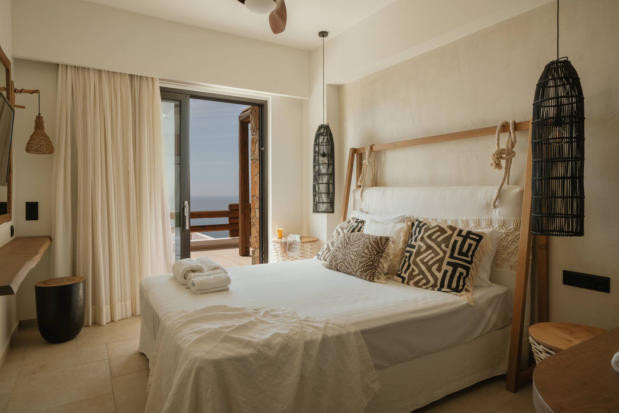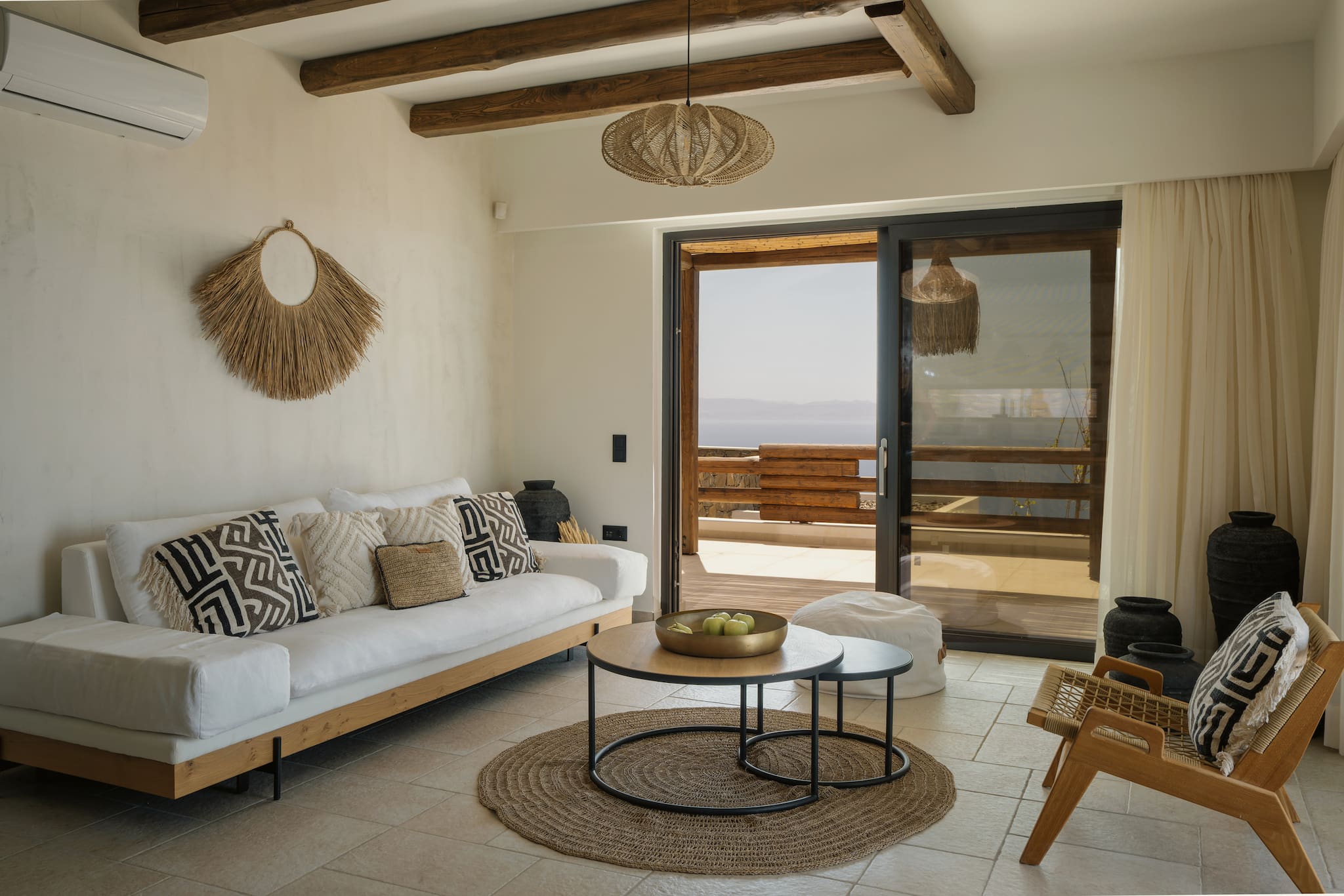 ArtOikia Villas, Ilios and Ammos, are bathed in natural light, offering uninterrupted views of the sunset and the crystal-blue Cretan Sea. These villas combine luxury, comfort, and modern amenities, creating an environment designed for relaxation, indulgence, and unforgettable stays. Set in a tranquil location, they provide complete privacy and a breathtaking setting.