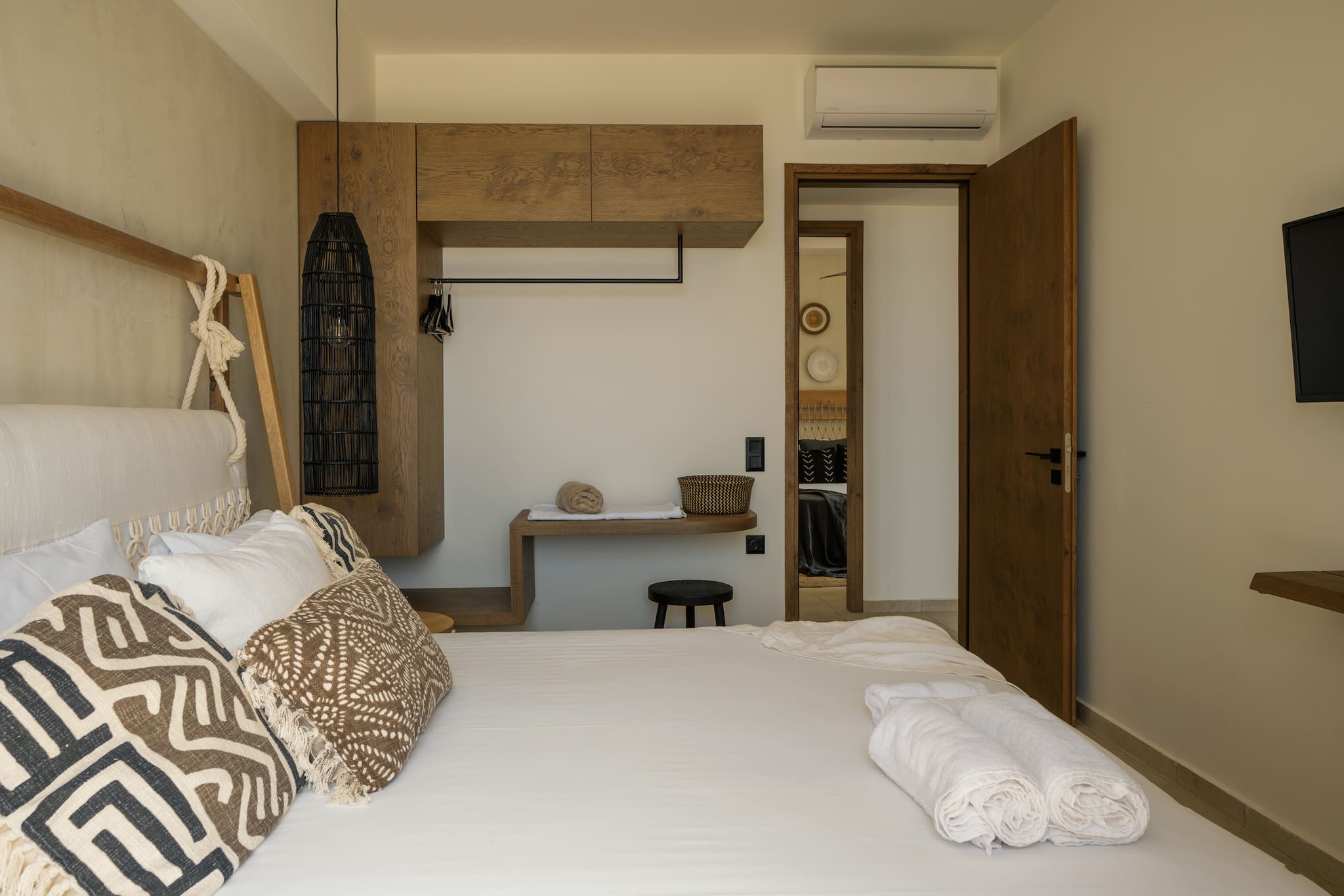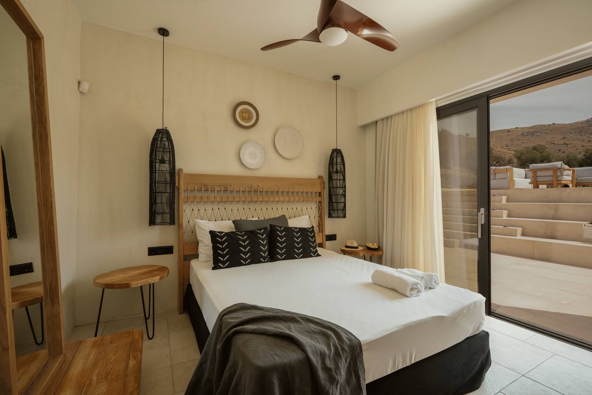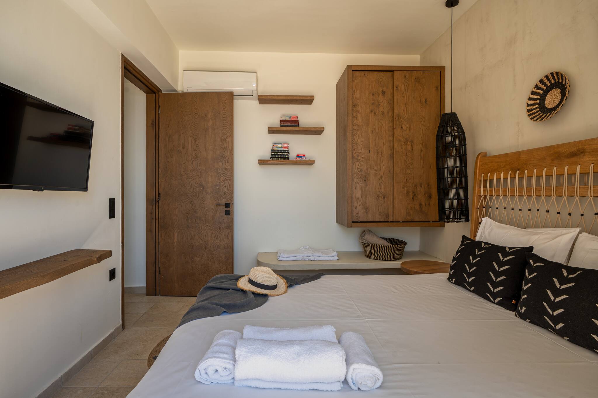 ArtOikia Villas are near Agios Pavlos Beach, known for its pristine waters, and close to the most famous south coast beaches of Rethymno. A secluded Prasonisi Beach is nearby, ideal for walking, swimming, and photography. Restaurants, supermarkets, bakeries, and pharmacies are about a 30-minute drive in Spili or Agia Galini villages.