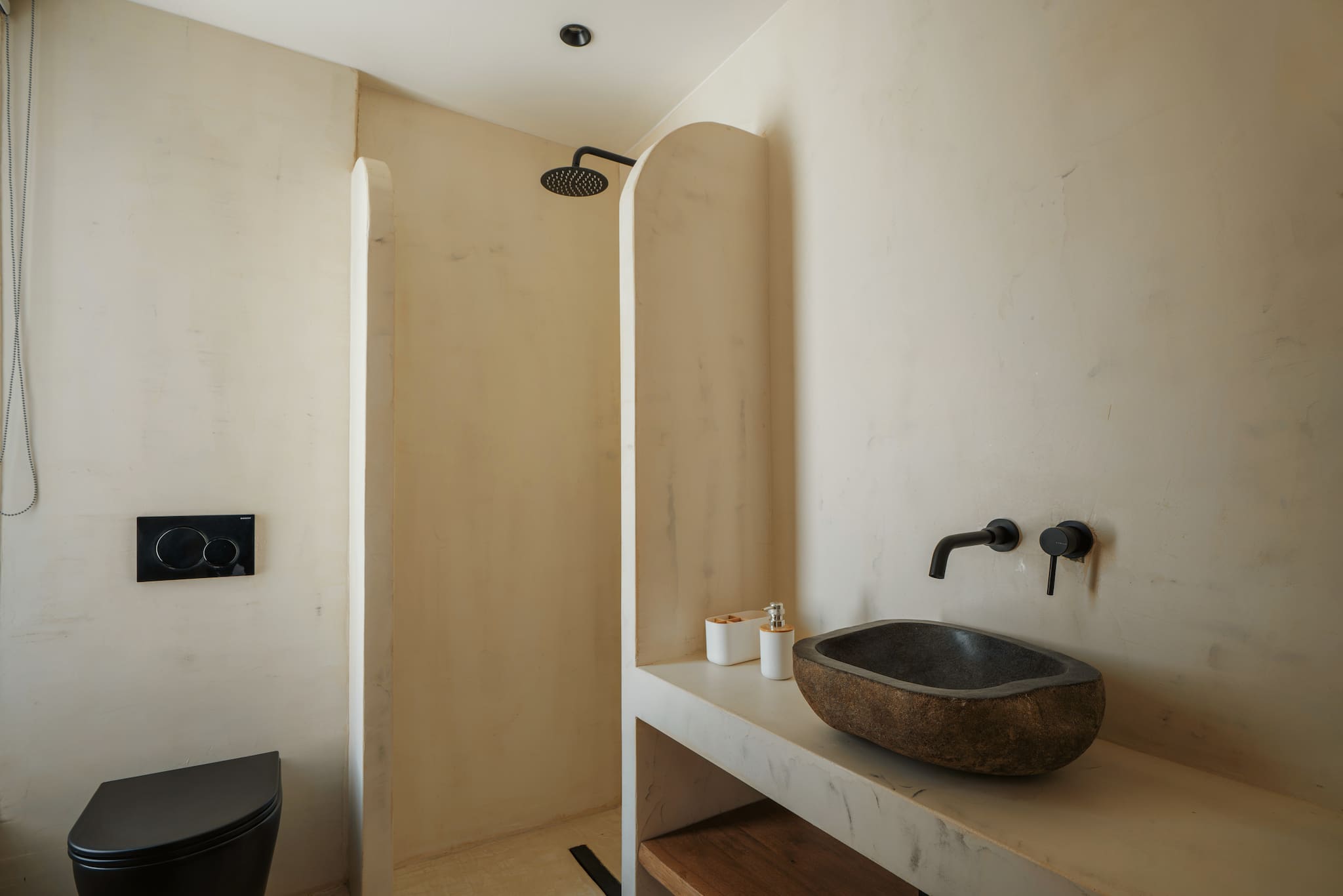 The architectural design blends contemporary luxury with subtle traditional touches, harmonizing with the island’s natural surroundings. Smooth-edged exteriors, refined interiors, and a carefully chosen palette of materials create a sophisticated yet relaxed atmosphere.