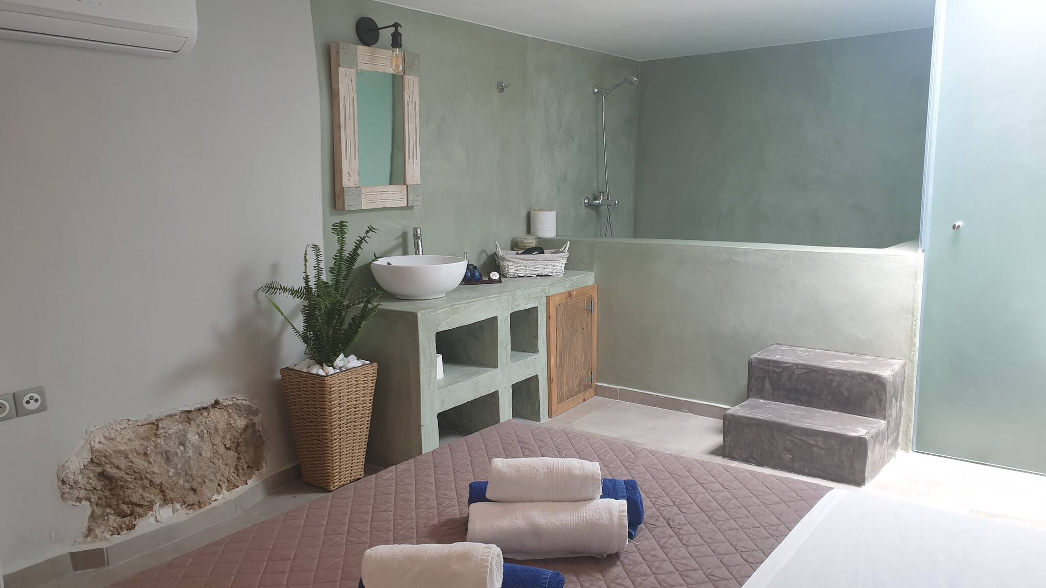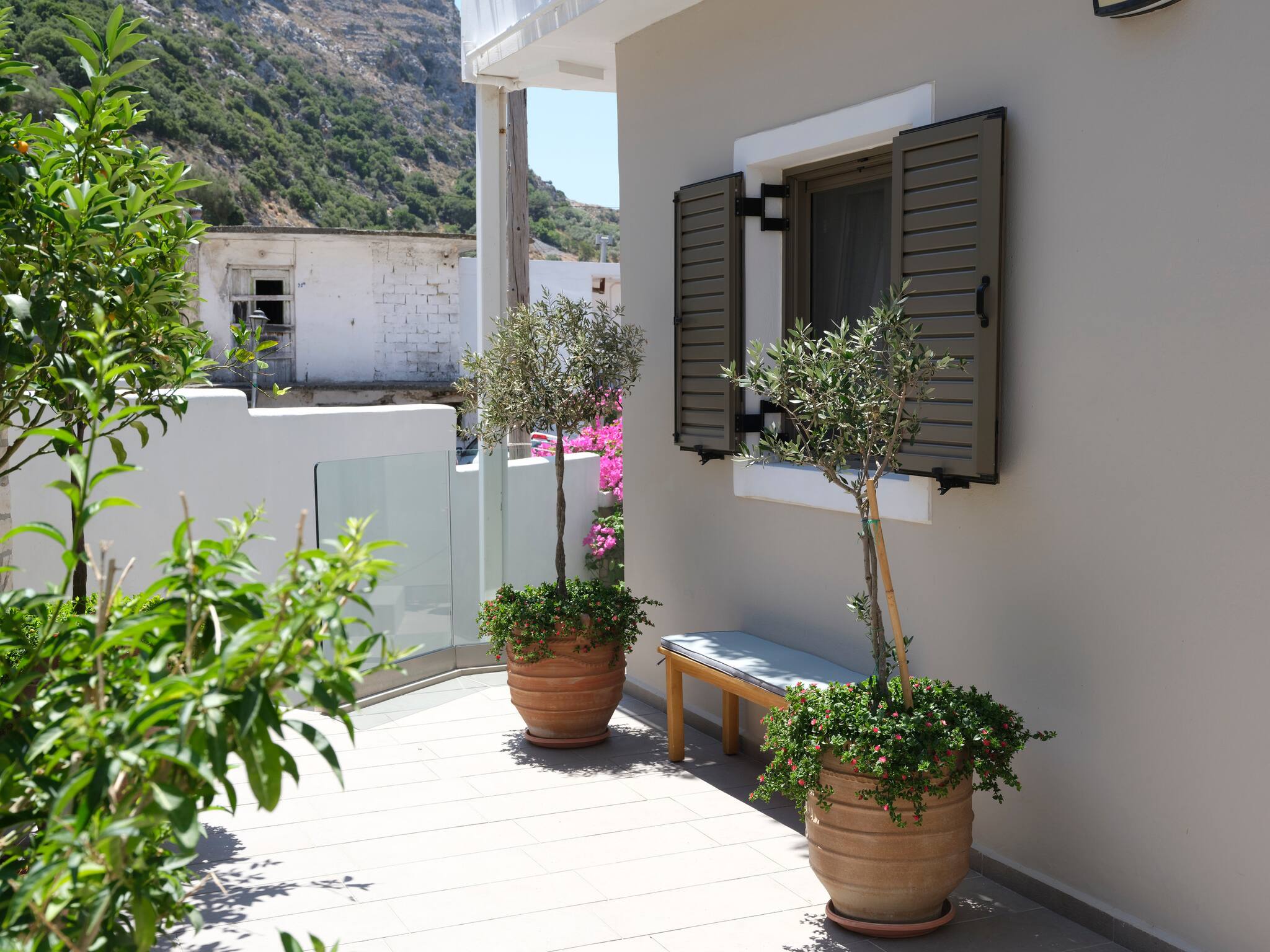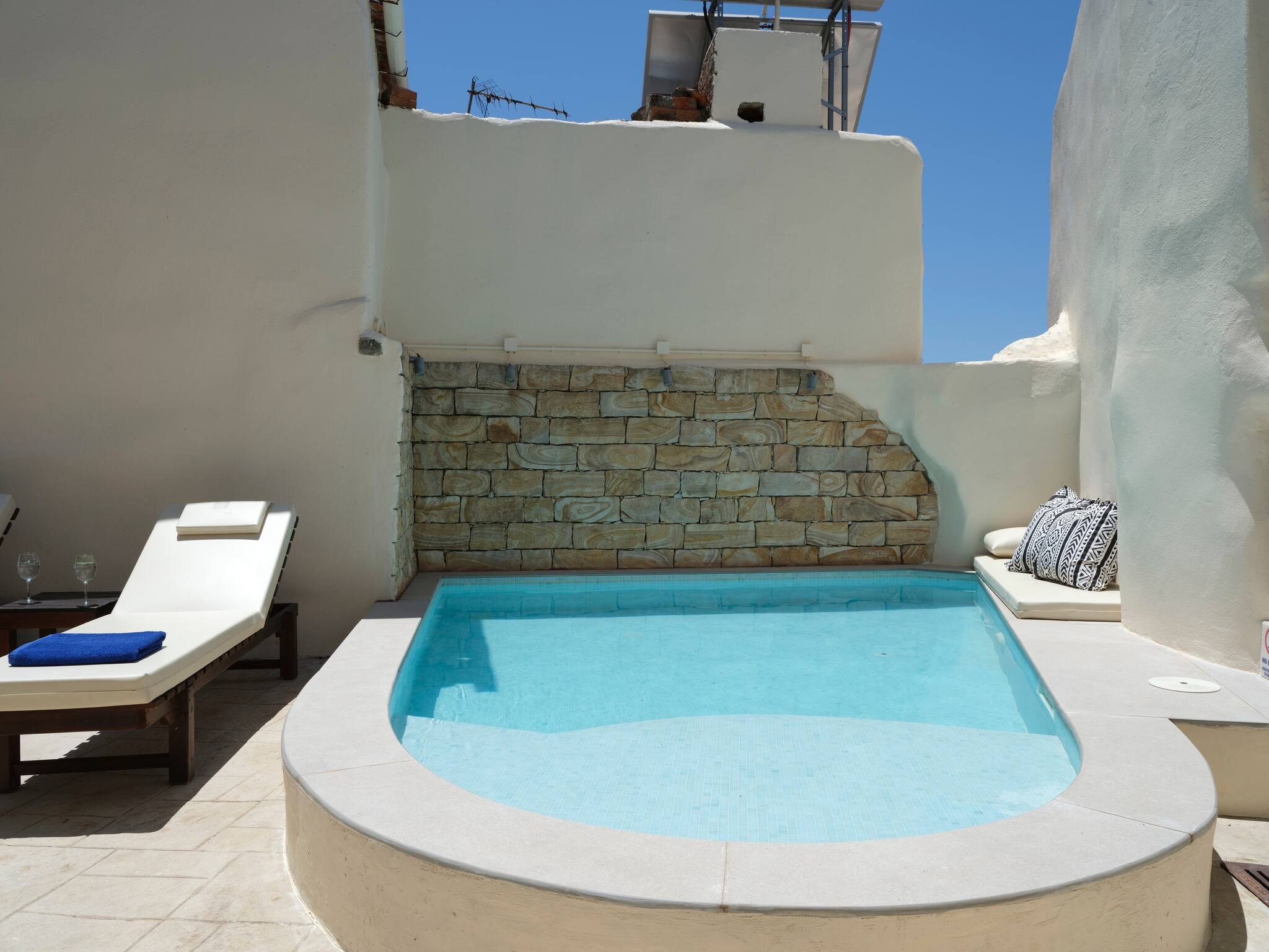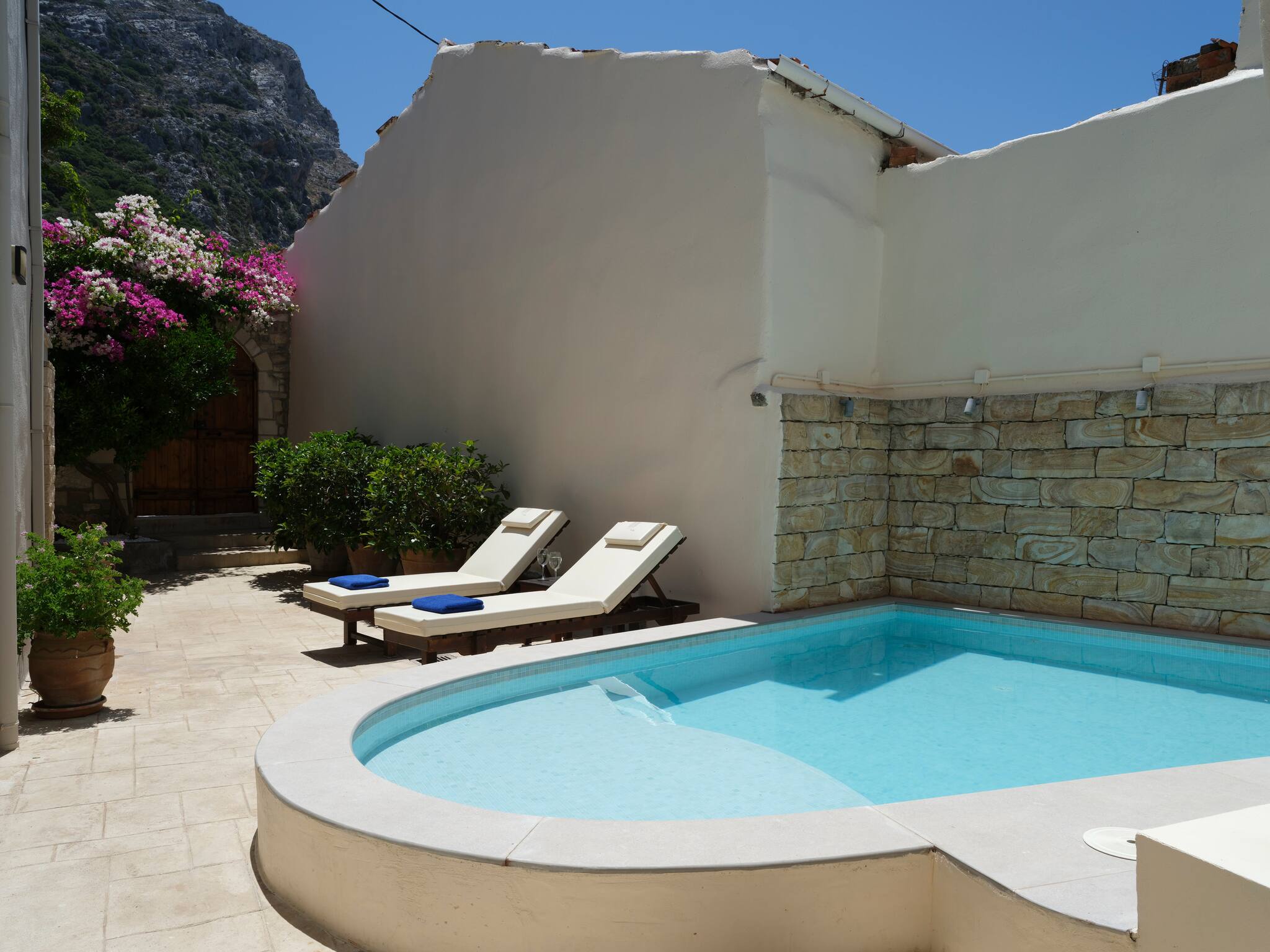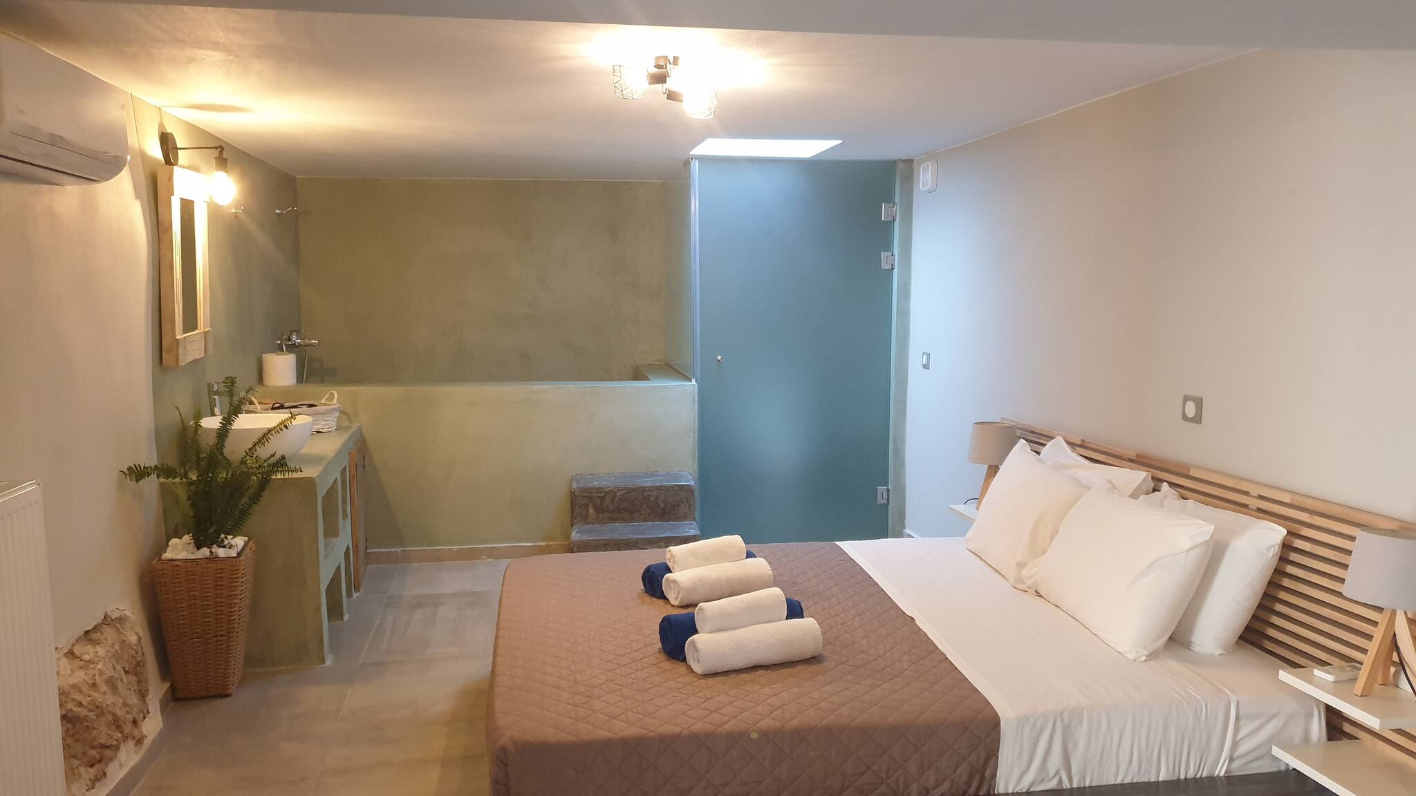 Enjoy the beautiful panoramic views from the rooftop terrace, where you’ll find a Jacuzzi — perfect for romantic moments — and a barbecue area ideal for gatherings with family or friends. You can also unwind by the private plunge pool in the backyard, surrounded by sunbeds, local flowers, herbs, and vegetables, while soaking up the Cretan sun.