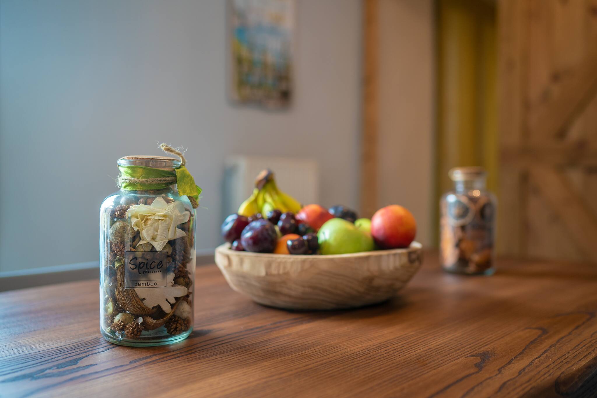 In the first-floor apartment, there is one double bedroom and one bedroom with a bunk bed and a single bed, as well as a shared bathroom and an additional WC. The spacious living room invites you to relax by the fireplace, and the fully equipped kitchen is perfect for preparing family meals. Step out onto the balcony with your morning coffee or evening wine and take in the peaceful village atmosphere.
