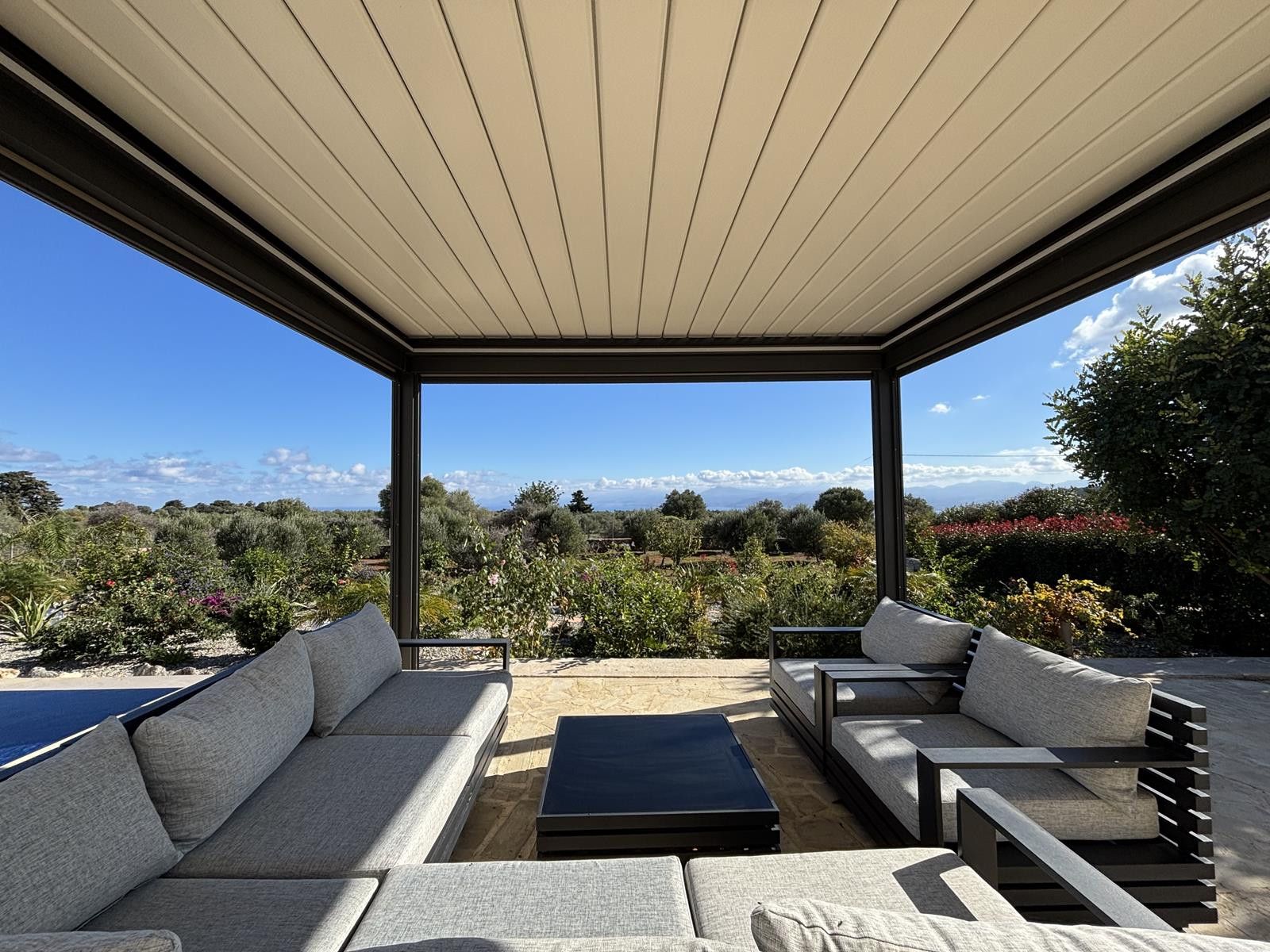 Outdoors, the villa truly shines. Guests can enjoy a private infinity heated swimming pool (4 × 8 meters), relax on the multiple terraces, refresh under the outdoor shower, or prepare meals in the stone-built BBQ area, which includes a large dining table The villa is surrounded by a private 2,000 m² garden, blending seamlessly into the natural landscape.